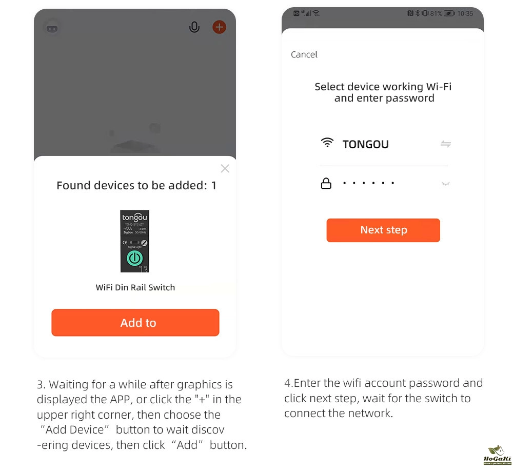 3 . Waiting for a while after graphics is displayer the app,or click the"+"in the upper righe corner , then choose the"Add Device"button to waitdaiscovering devi