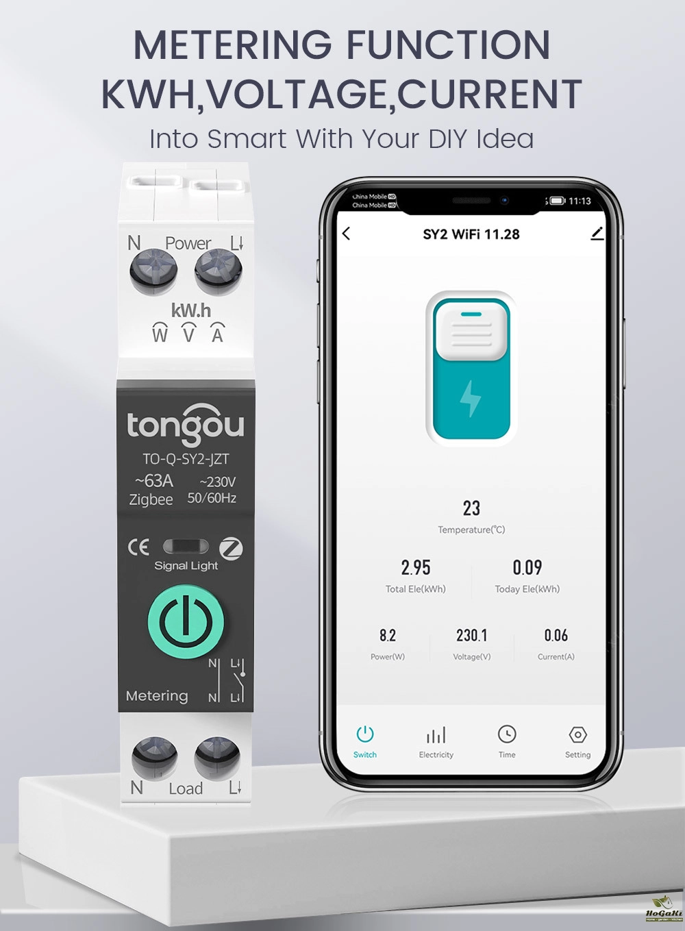 TOMZN 63A 1P+N WIFI Smart Switch Energy Meter Kwh Metering Monitoring Timer Relay MCB TUYA smartlife voltage current protection