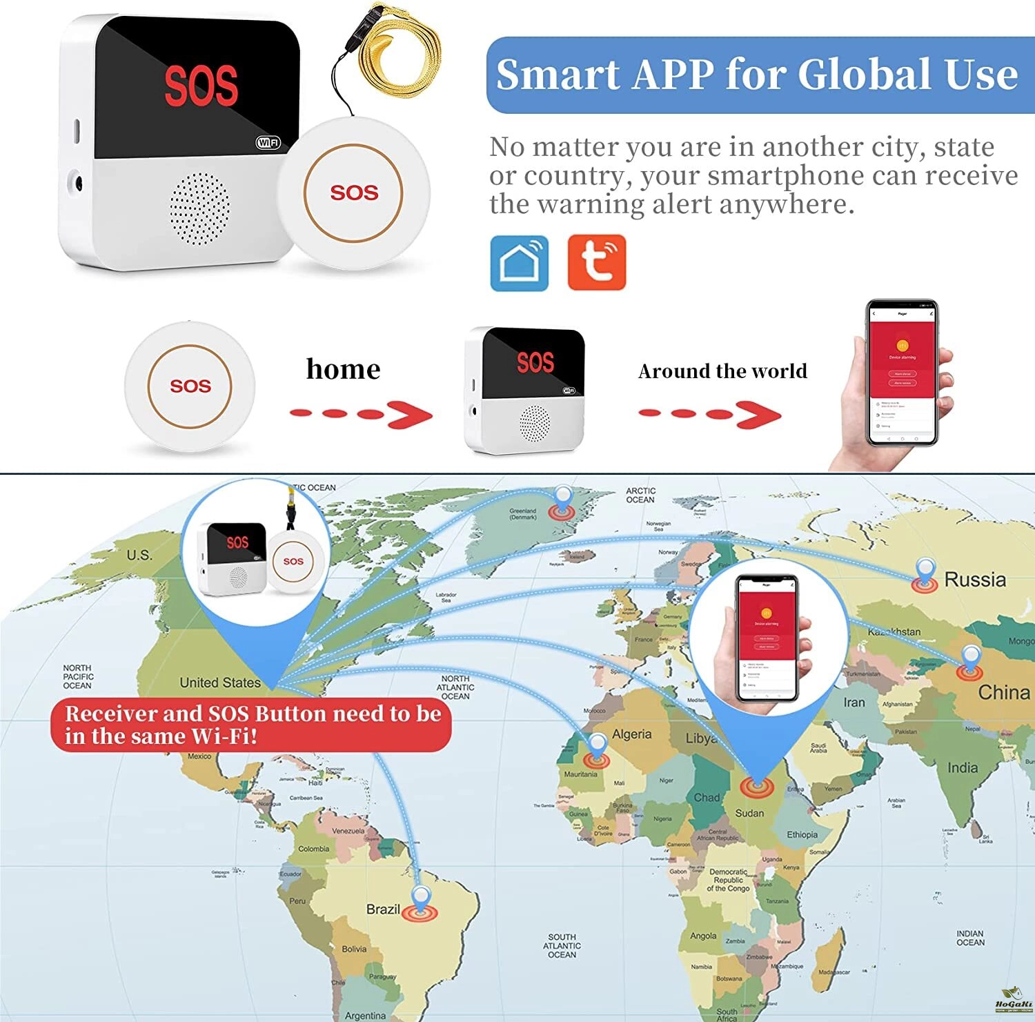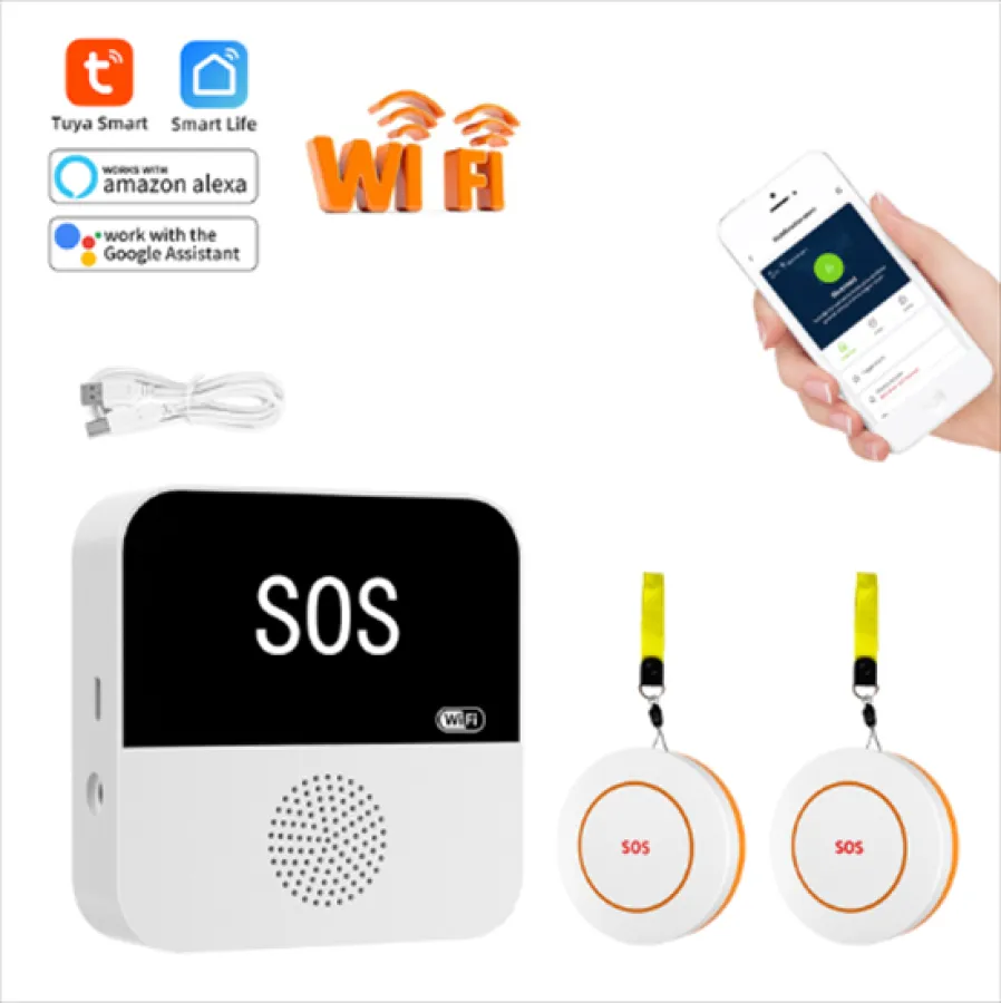 Tuya Seniors WIFI Button Wireless Caregiver Pager Elderly SOS Alarm Senior Elderly Emergency Alarm For Patients Elderly At Home