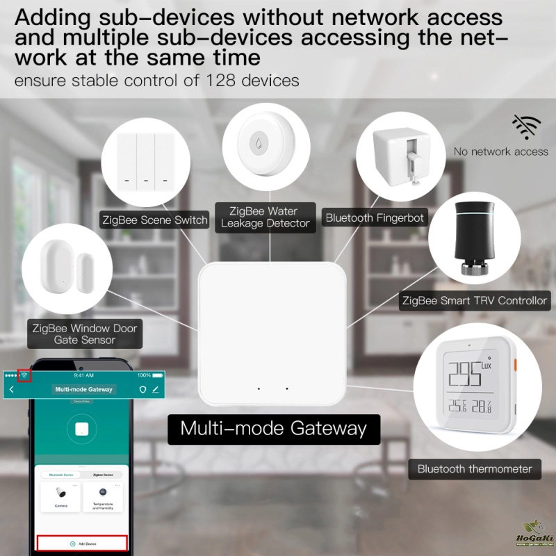 9.The multi-mode gateway supports Wi-Fi+Bluetooth+Zigbee multi-protocol communication. Bluetooth mesh (SIG) and Zigbee communication ensure stable control of 128 devices.