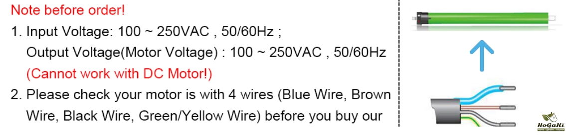 - Please note at least 4 wires must be required for your motor,  Live Wire 1, Live Wire 2 (for OPEN and CLOSE), Earth Wire and Neutral wire , otherwise it can't be connected to the motor.