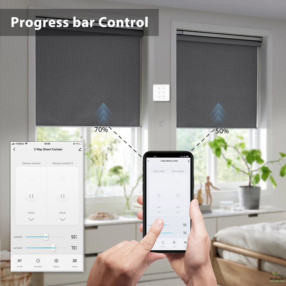 You can create group in the APP to manage all the blinds in your house and share the device to all your family members.