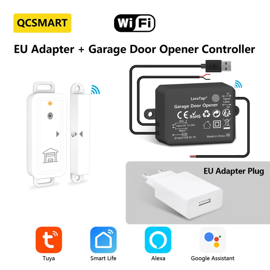 LoraTap Tuya Smart Life Garage Door Opener Controller Dry Contact Switches Security Alarm System Work Google Assistant Alexa