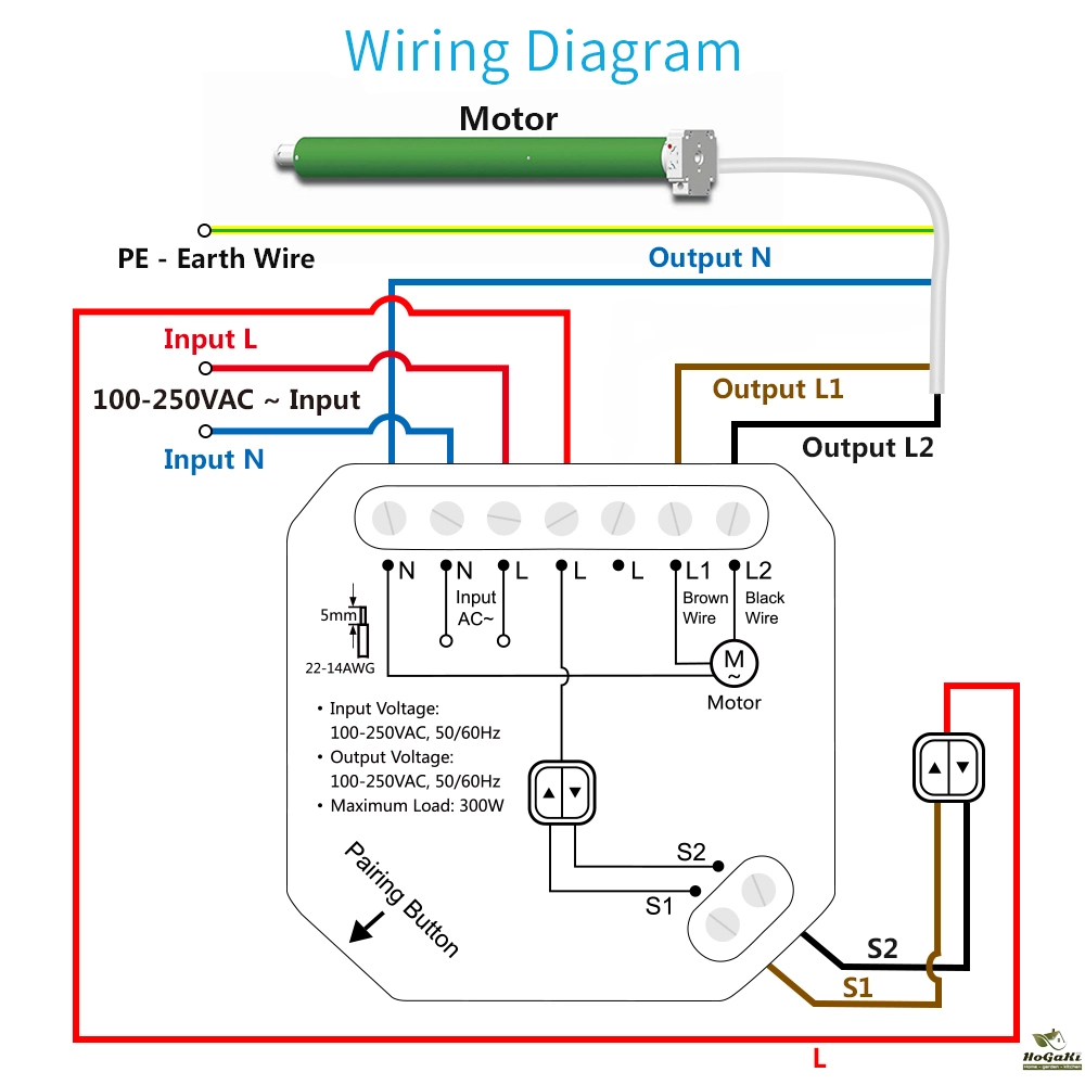 Wiring:  Neutral Wire, L1, L2, Earth Wire