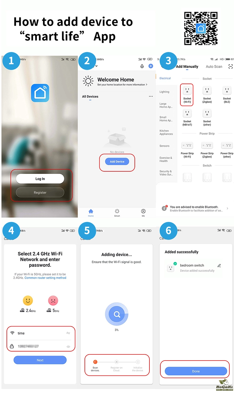 Step 1: Search “Smart Life or TuyaSmart” on APP store, Google Play or scan the QR code on user manual to download and install it.