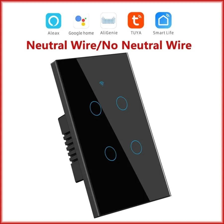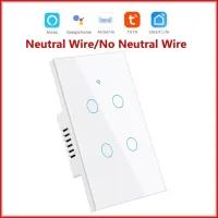 Tuya US WiFi+Bluetooth Smart Switches No Neutral Wire Required 1/2/3/4 Gang Light WiFi Touch Switch Work with Alexa Google Home