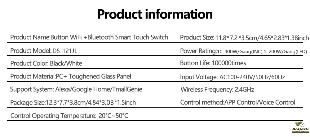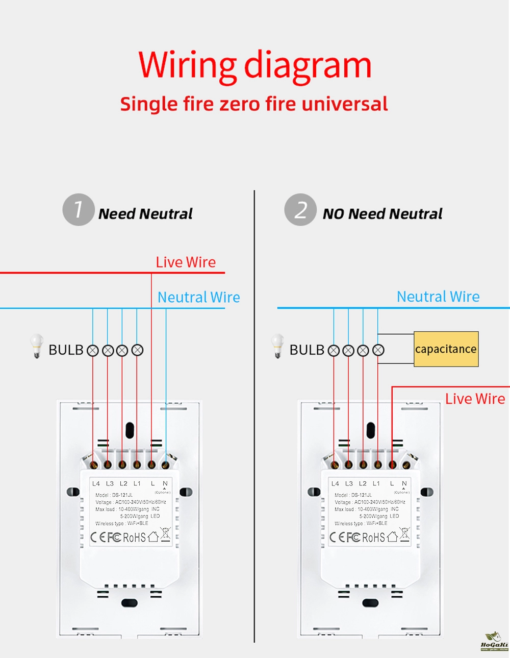 Rated Load:10-400W/Gang(INC) 5-200W/Gang(LED)