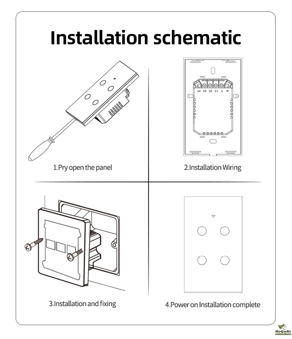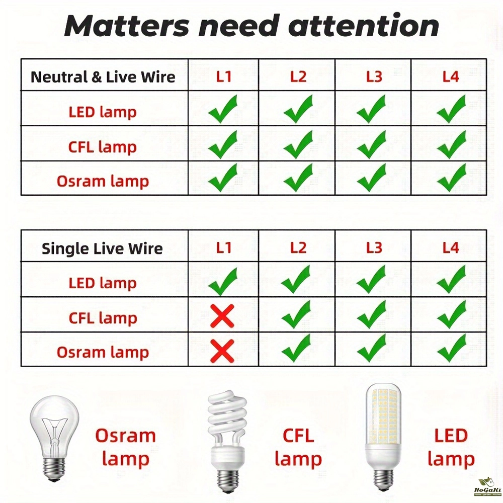 • Versatile Switch Type :This versatile switch type allows for 1/2/3/4 gang light control, offering flexibility and customization to suit your specific needs.