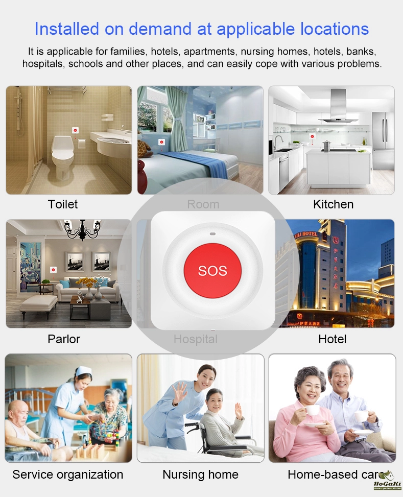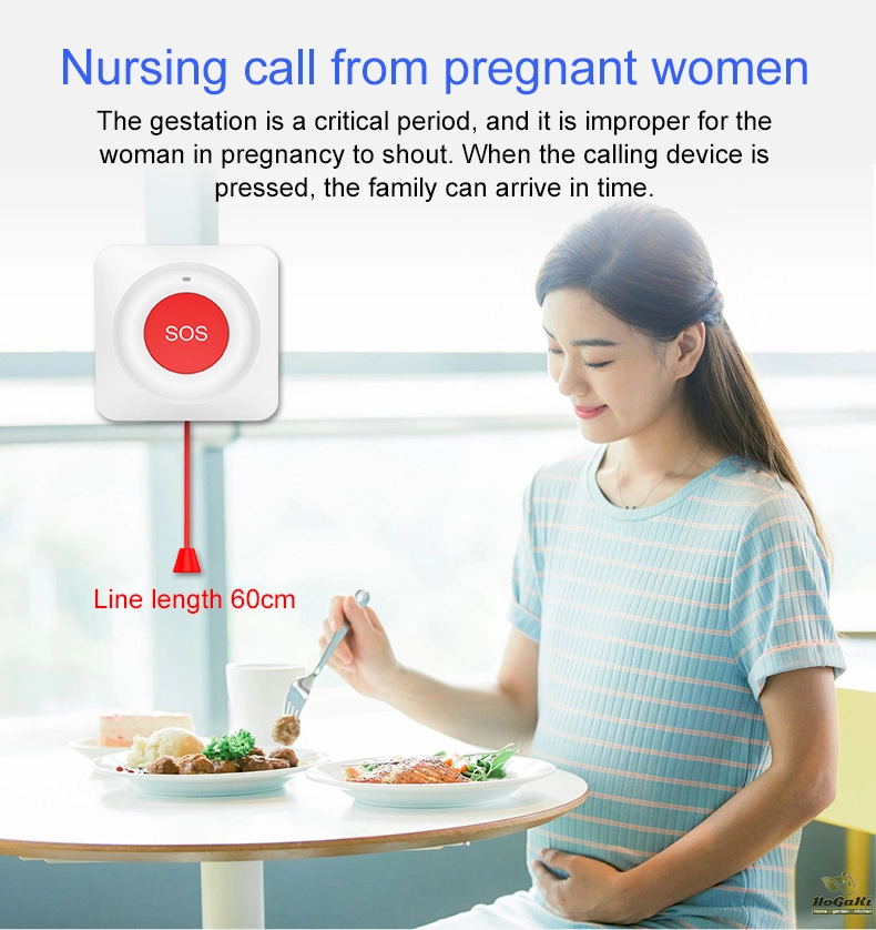 Smart caregiver call button, supports 2.4GHz WiFi, and 10m wireless range.