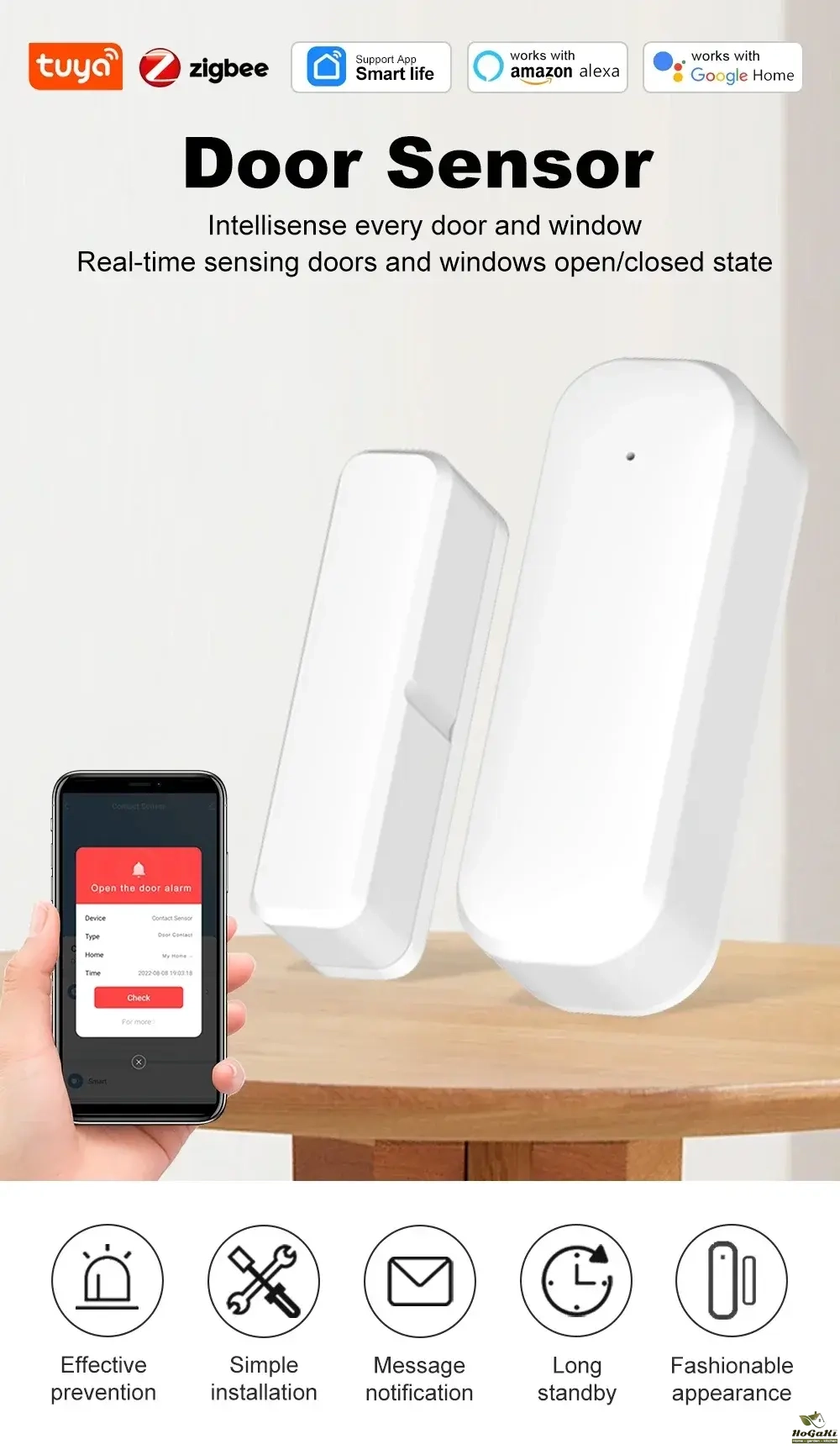 2.Control Channels: With 2 control channels, you can easily control the door sensor from your smartphone or tablet.
