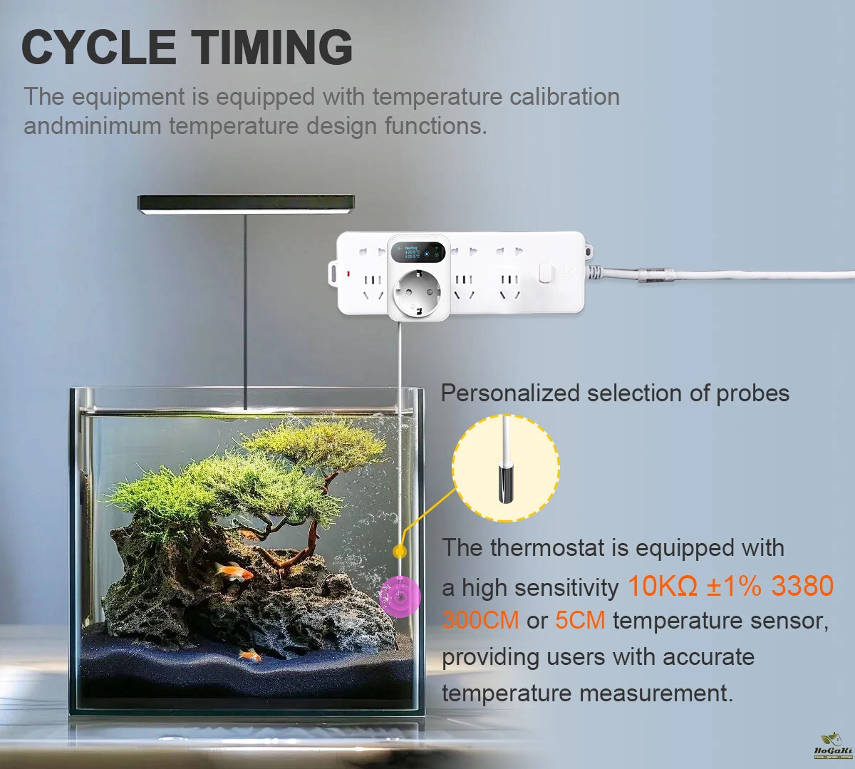 Automatically turns on or off within specific time periods each day to save energy and improve convenience. For example, you can schedule the heater or fan to turn on at the same time every day, or set up cycle timing for functions such as plant irrigation or fish tank water pump circulation.