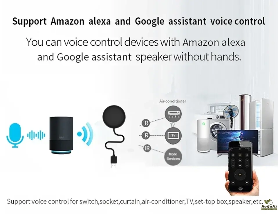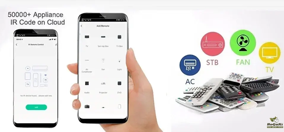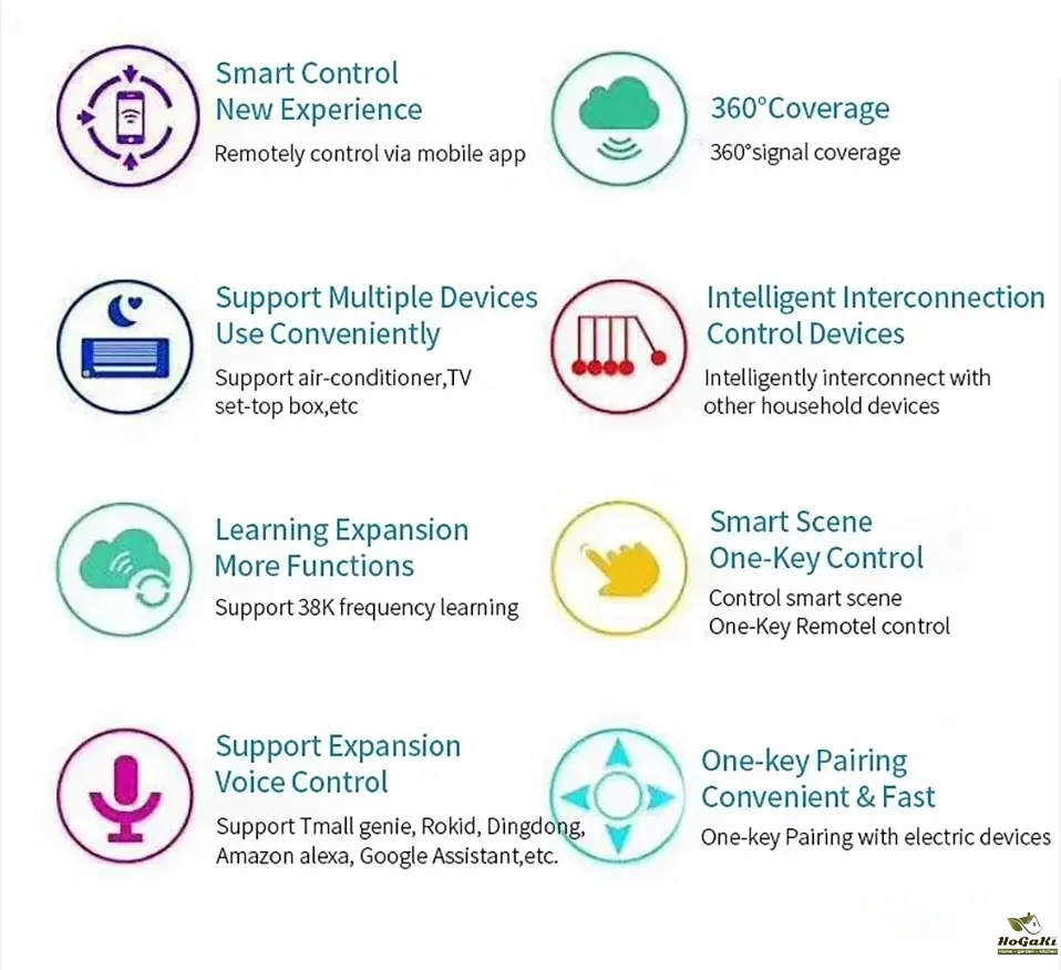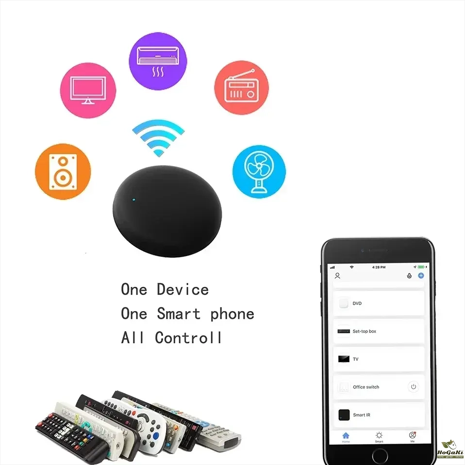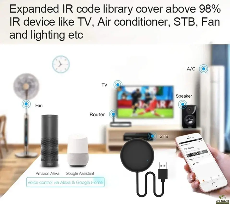 The Smart IR Remote expanded IR code library cover above 98% IR device. So TV, Air conditioner, STB Fan and lighting etc. which used IR Control can be control by it.