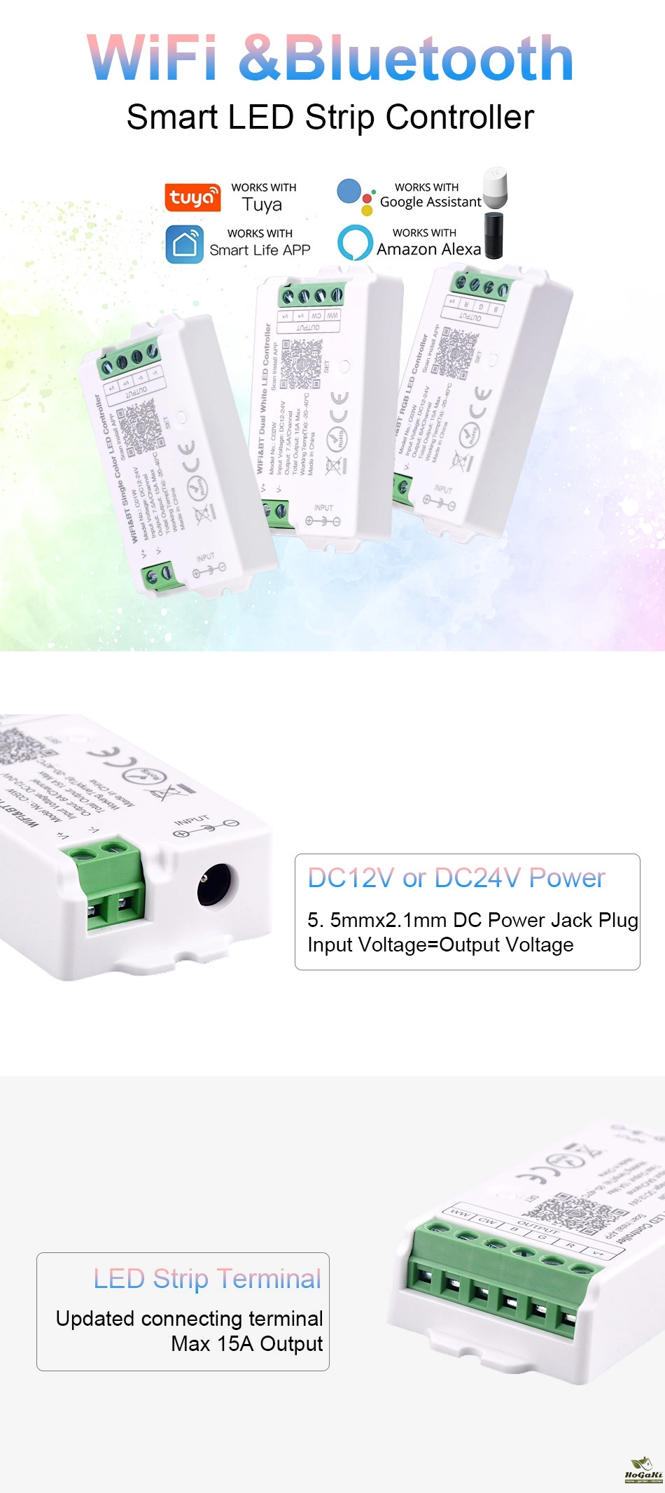 Tuya WiFi LED Controller Alexa Google Home Voice Control RGB RGBW CCT LED Strip Smart Controller APP BT RF Remote 2.4G DC12V-24V
