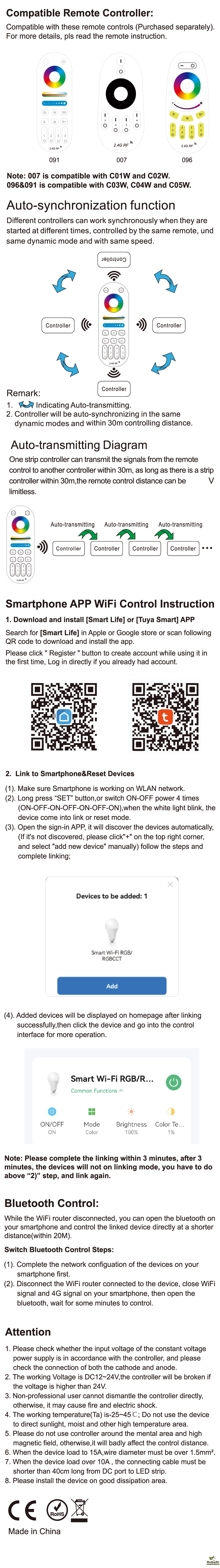 Static color: Single Color, CCT, RGB, RGBW, RGBCCT