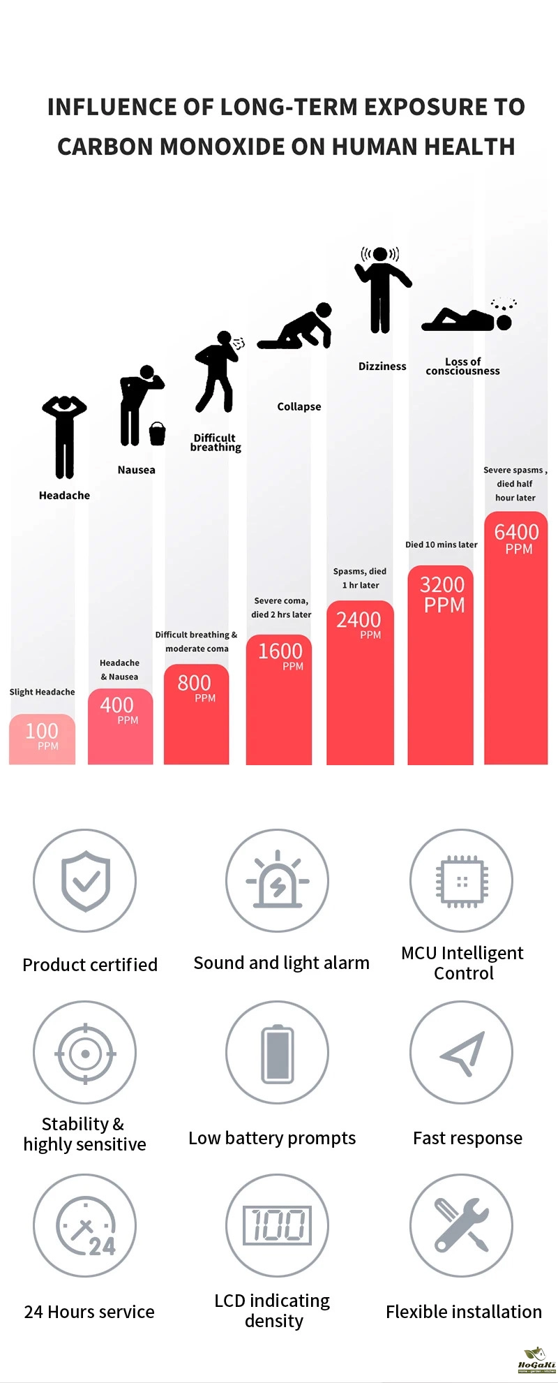 • LCD Digital Display :The LCD digital display makes it easy to read and understand the carbon monoxide levels in your home, providing real-time information at your fingertips.
