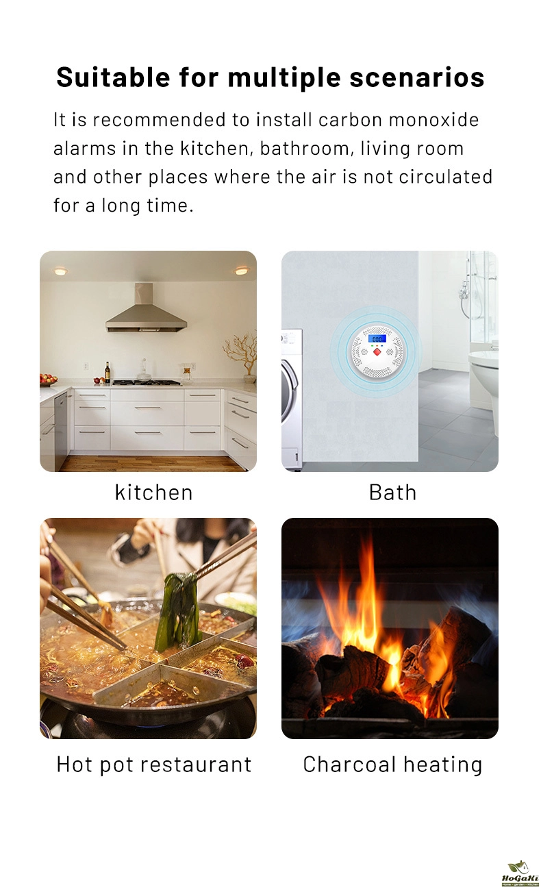 【Loud Alarm】When a dangerous level of carbon monoxide is detected, the red LED will flash and emit a loud alarm that can be heard even through walls, reminding you to make your defense as soon as possible to avoid danger.