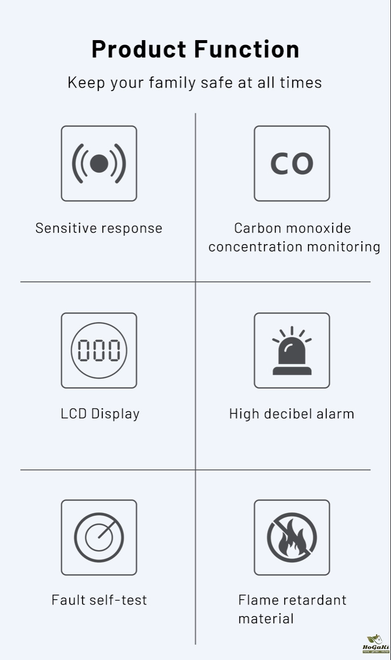 【Visible LED Display】3-digit display, when a carbon monoxide leak is detected, the current value will be displayed according to the concentration , an intuitive display for greater peace of mind.