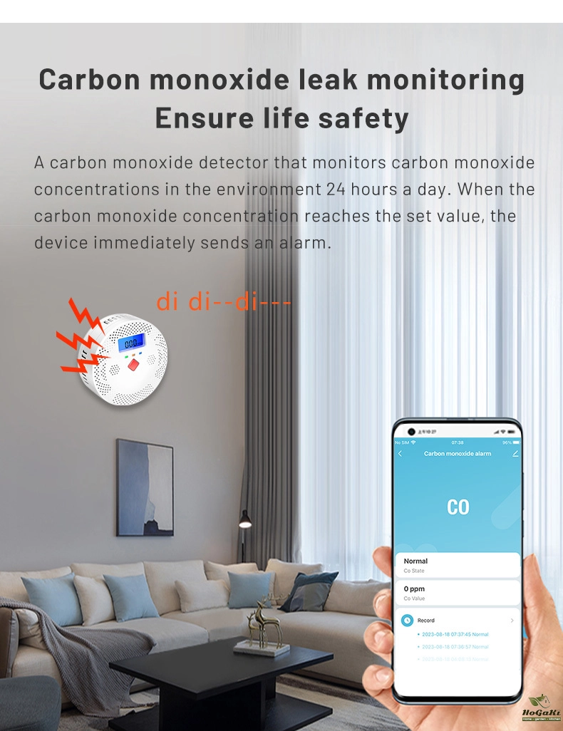 【Remote monitoring】The Carbon Monoxided concentration displaying (PPM) ,can be observed in real time through the mobile APP. No matter how far away you are from home, you can make your home smarter.