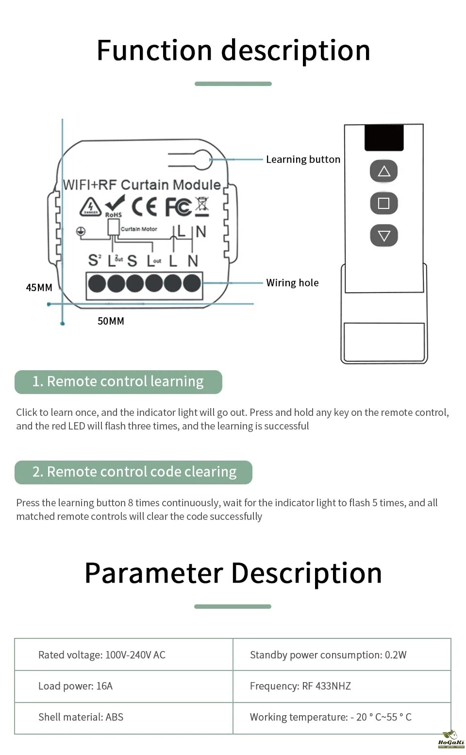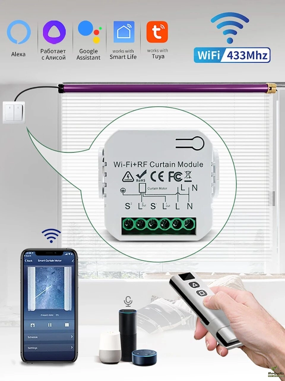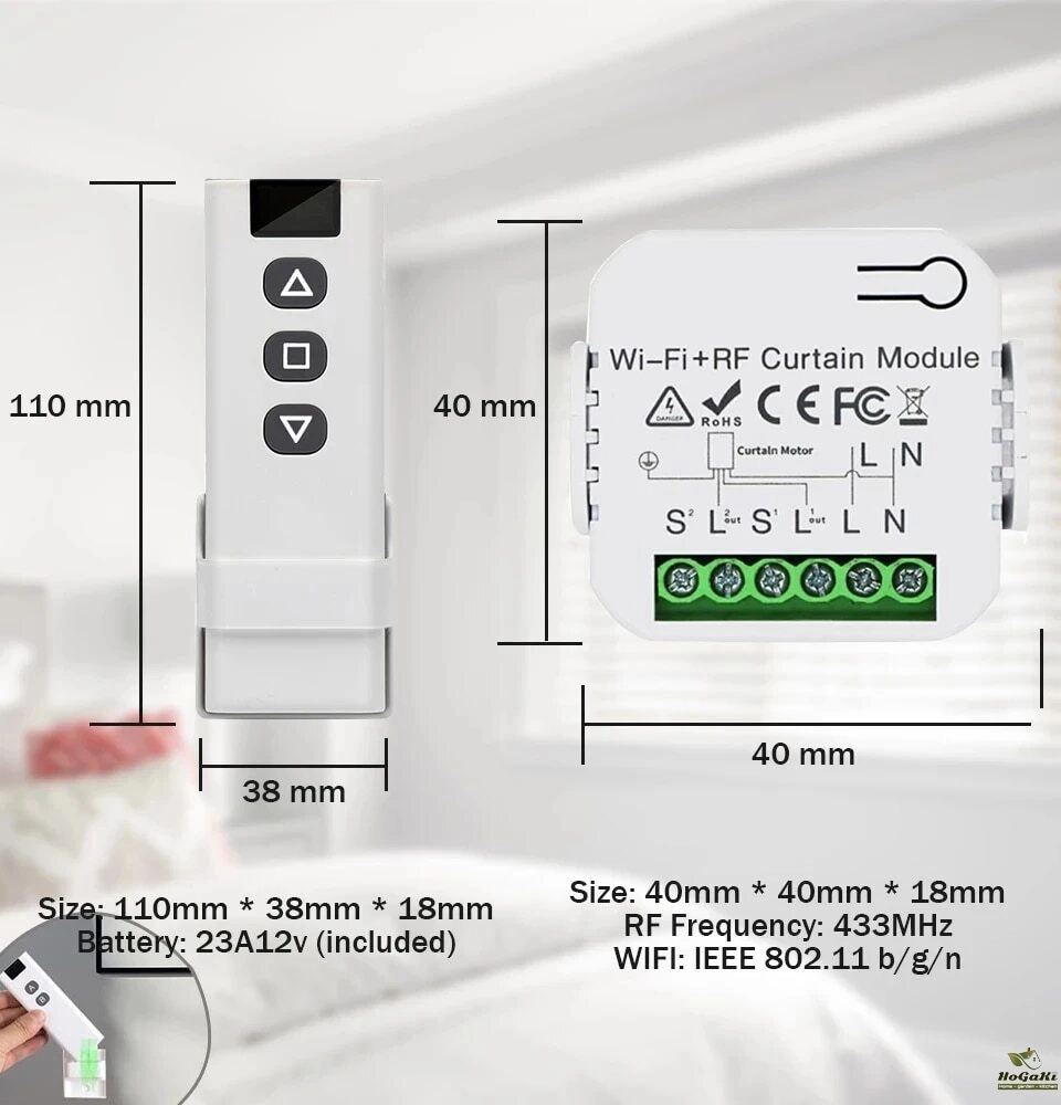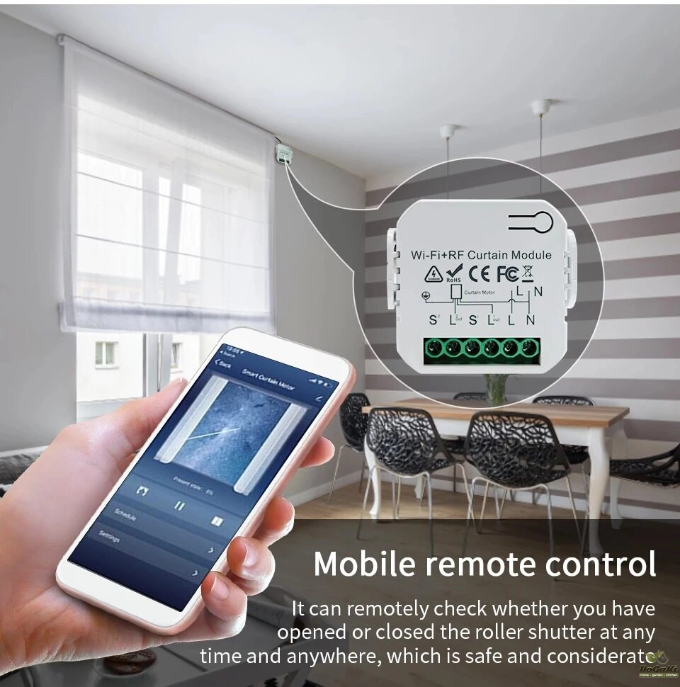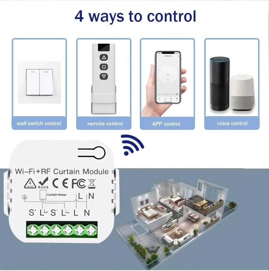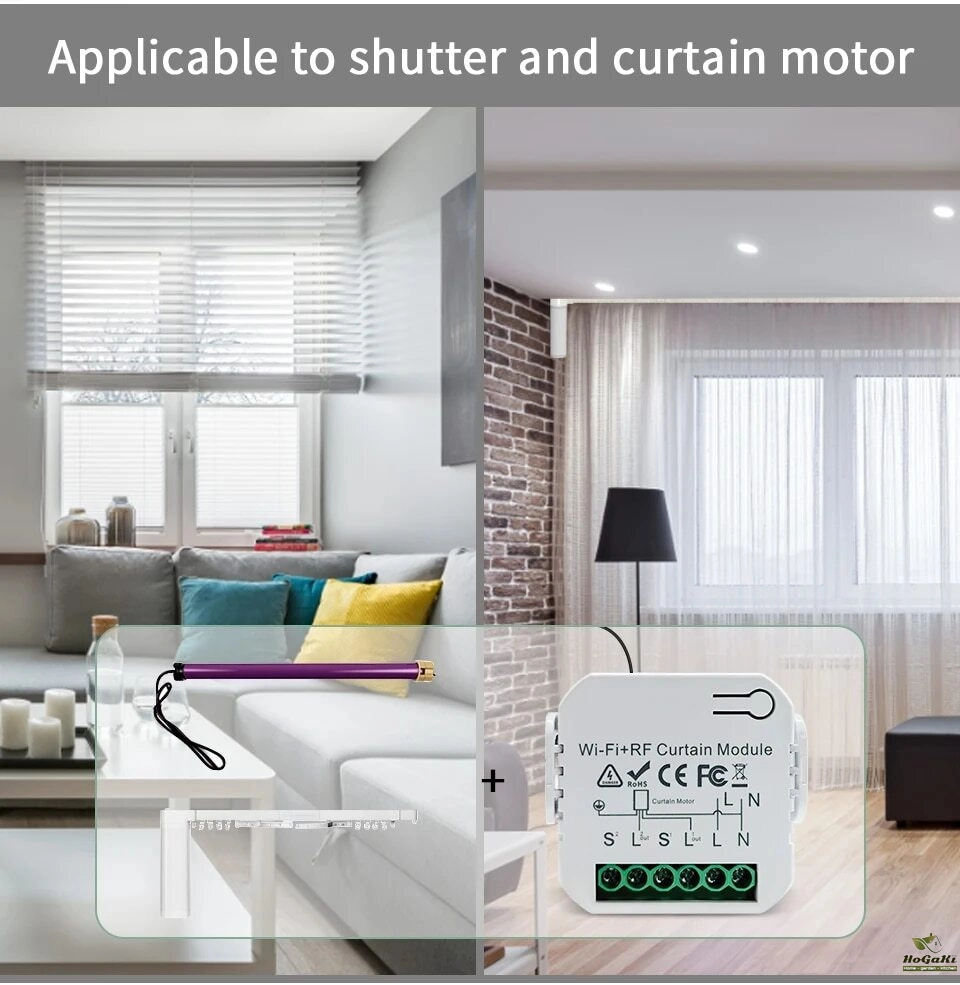 [RF and Wireless Remote Control with a much easier pairing mode] For adding the device with WiFi and Bluetooth connected: Able to remotely control your connected devices on your smartphone wherever you are. (Compatible with Android & iOS for Smart Life and Tuya App.) More importantly, this curtain switch module built-in RF433 frequency, so it Can be controlled with remote switch.