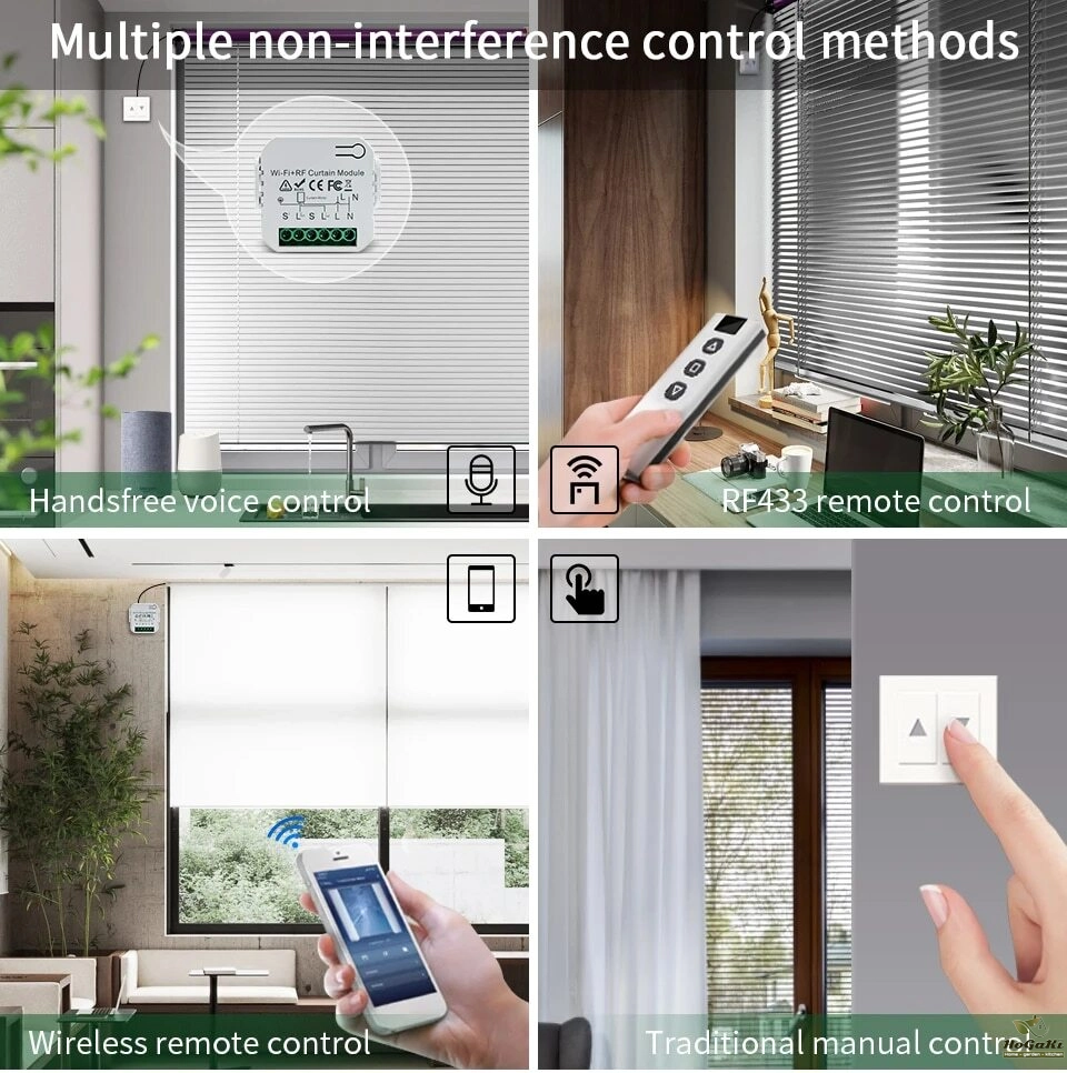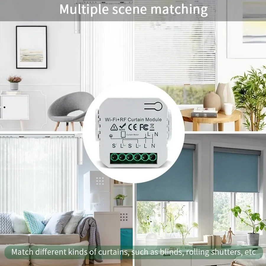 [Use with Much More Convenience with stop function on traditional switch] A really good substitution for a more new smart roller blind switch to work with your traditional curtain switch to realize intelligence. Press your traditional curtain switch once after switch to up/down (On the same button) to manually stop your curtains easily. Also, it can be connected with your roller blinds shutter motor to cleverly control your curtains.