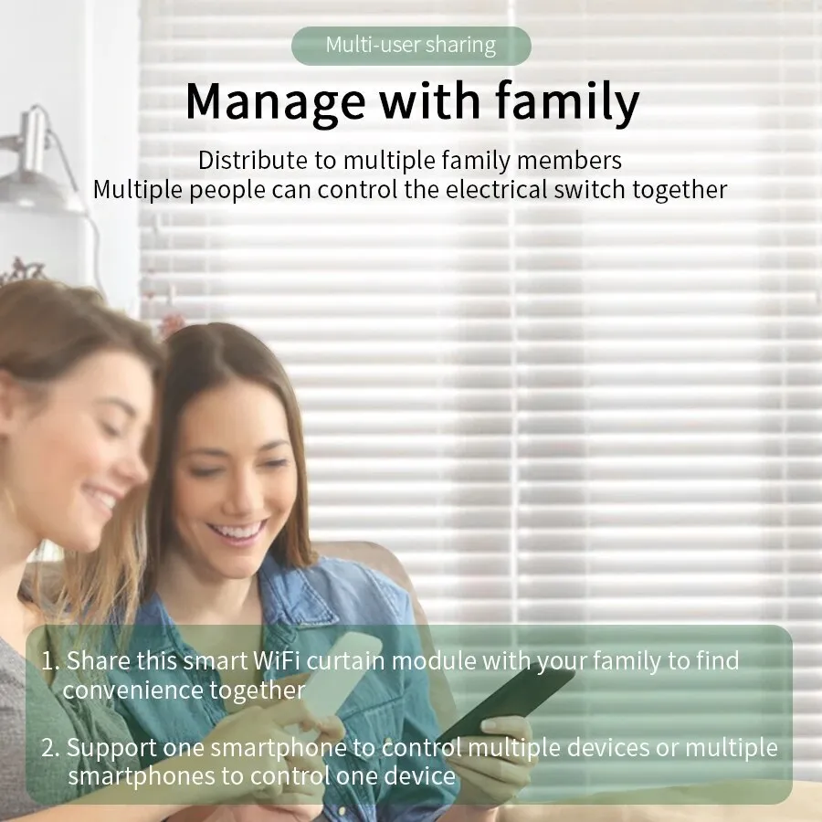 [Timer Setting and Family Sharing] Take full control of your blinds intelligently with the timer function on your App, which allows to open/close them at a specific time automatically. Even share device to your family members to connect the devices together, support one mobile control more and multiple phones one.
