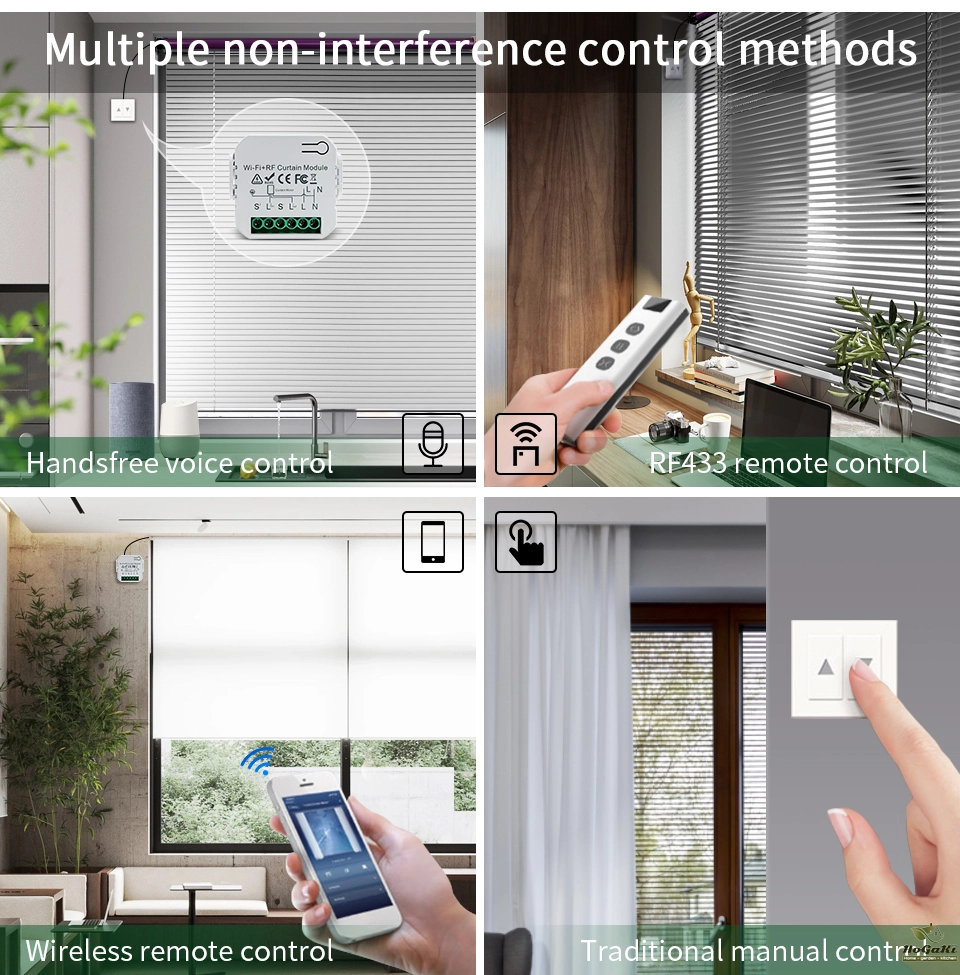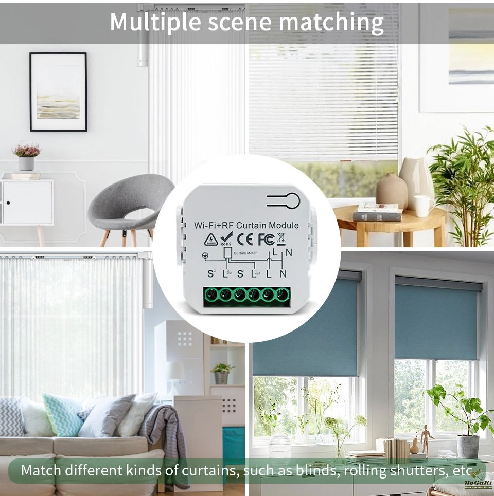 [Use with Much More Convenience with stop function on traditional switch] A really good substitution for a more new smart roller blind switch to work with your traditional curtain switch to realize intelligence. Press your traditional curtain switch once after switch to up/down (On the same button) to manually stop your curtains easily. Also, it can be connected with your roller blinds shutter motor to cleverly control your curtains.