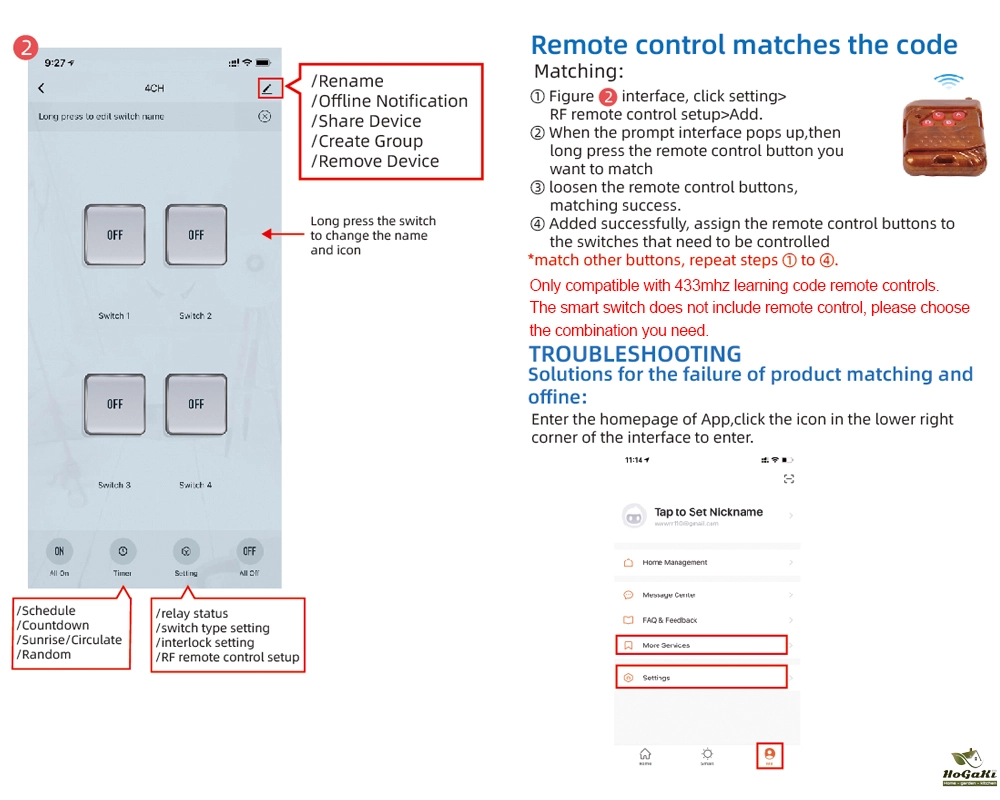 Choose the wifi switch with RF function, you can have three control methods. Remote control, mobile phone control, voice control