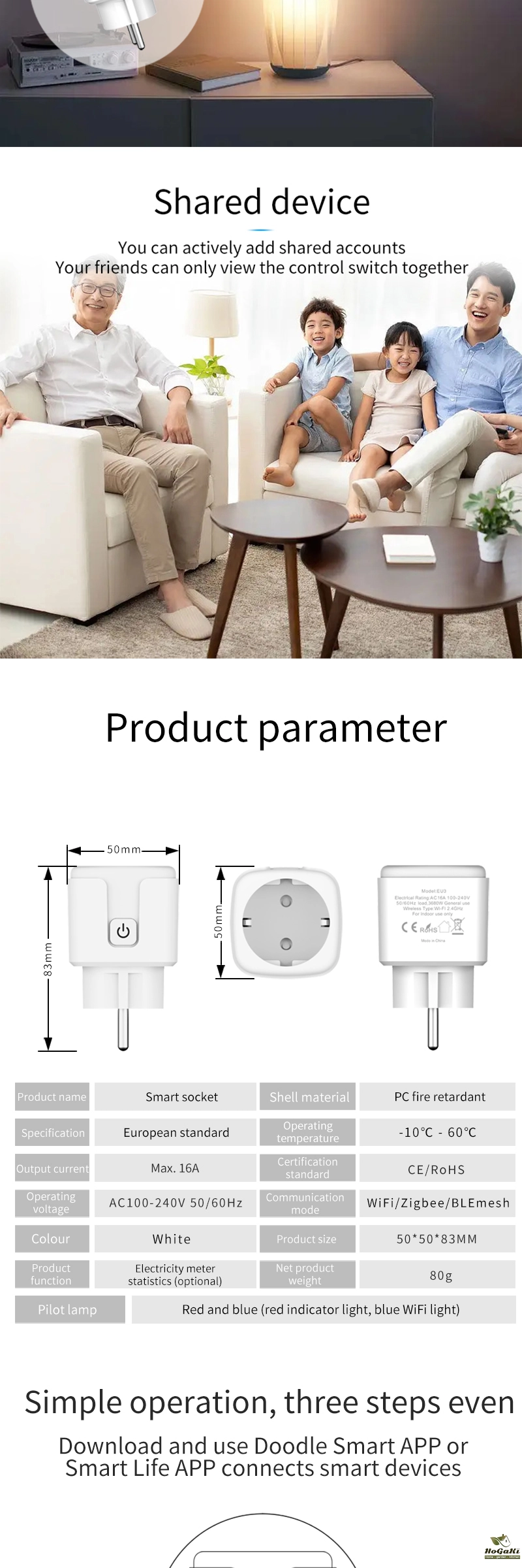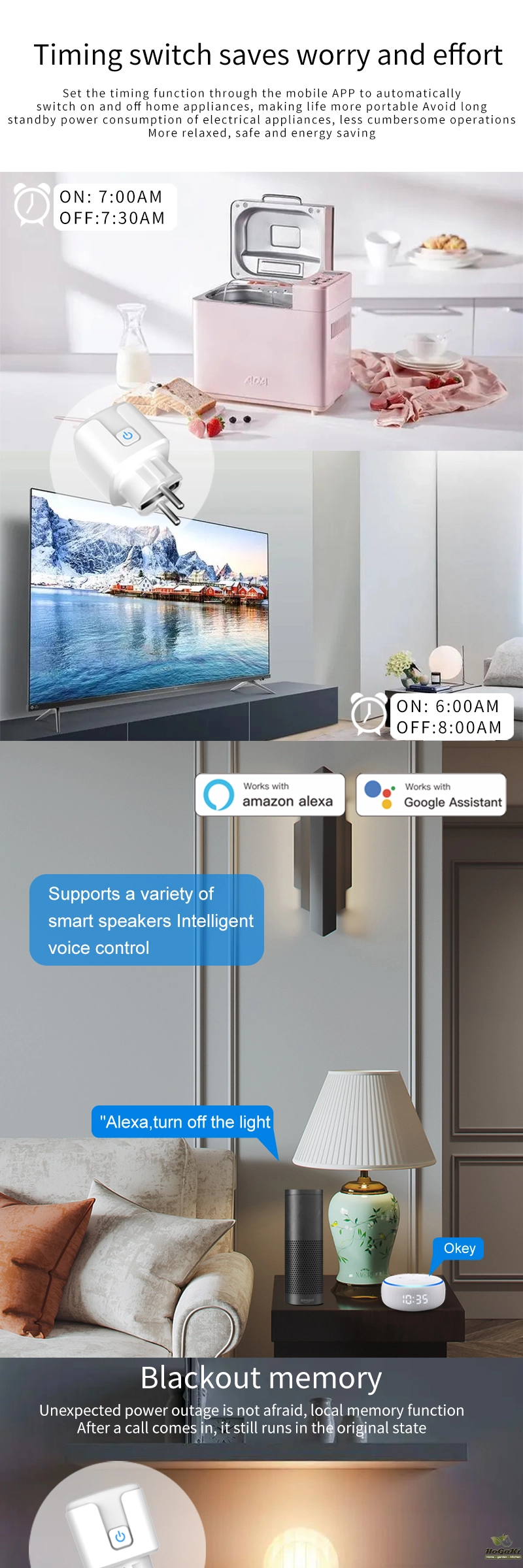 Voice controls the smart socket by Alexa/Yandex Alice/Google Home Assistant. Just need to give a simple command “Hey, Google, turn off bedroom light", enjoying your easier and smarter life.