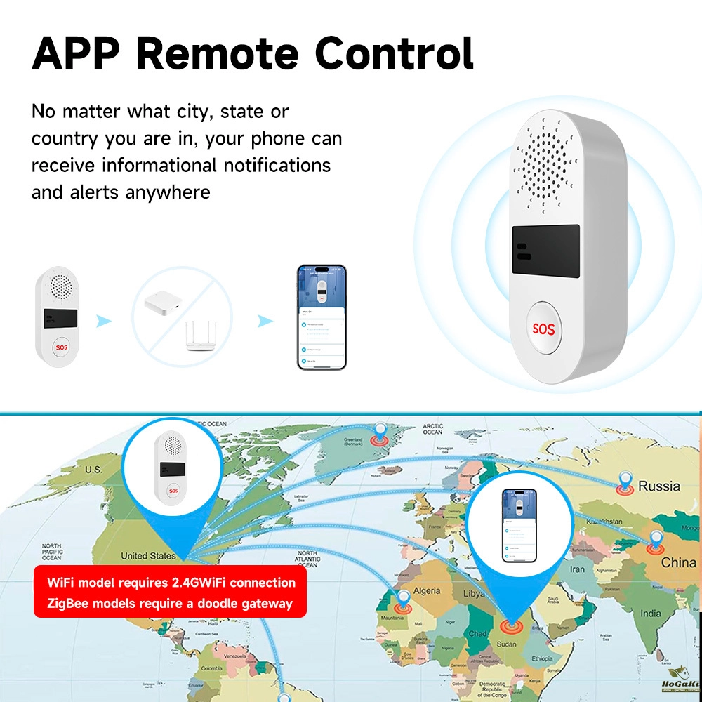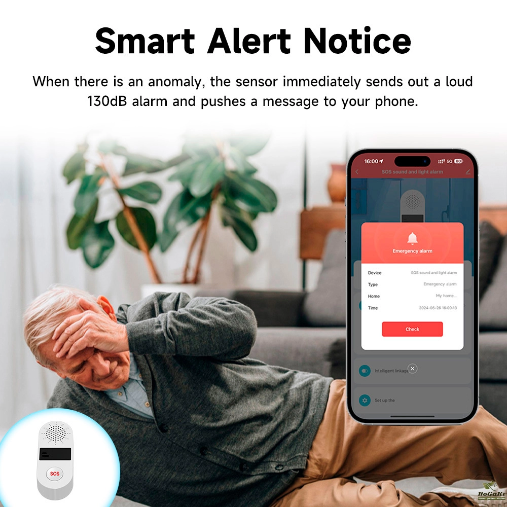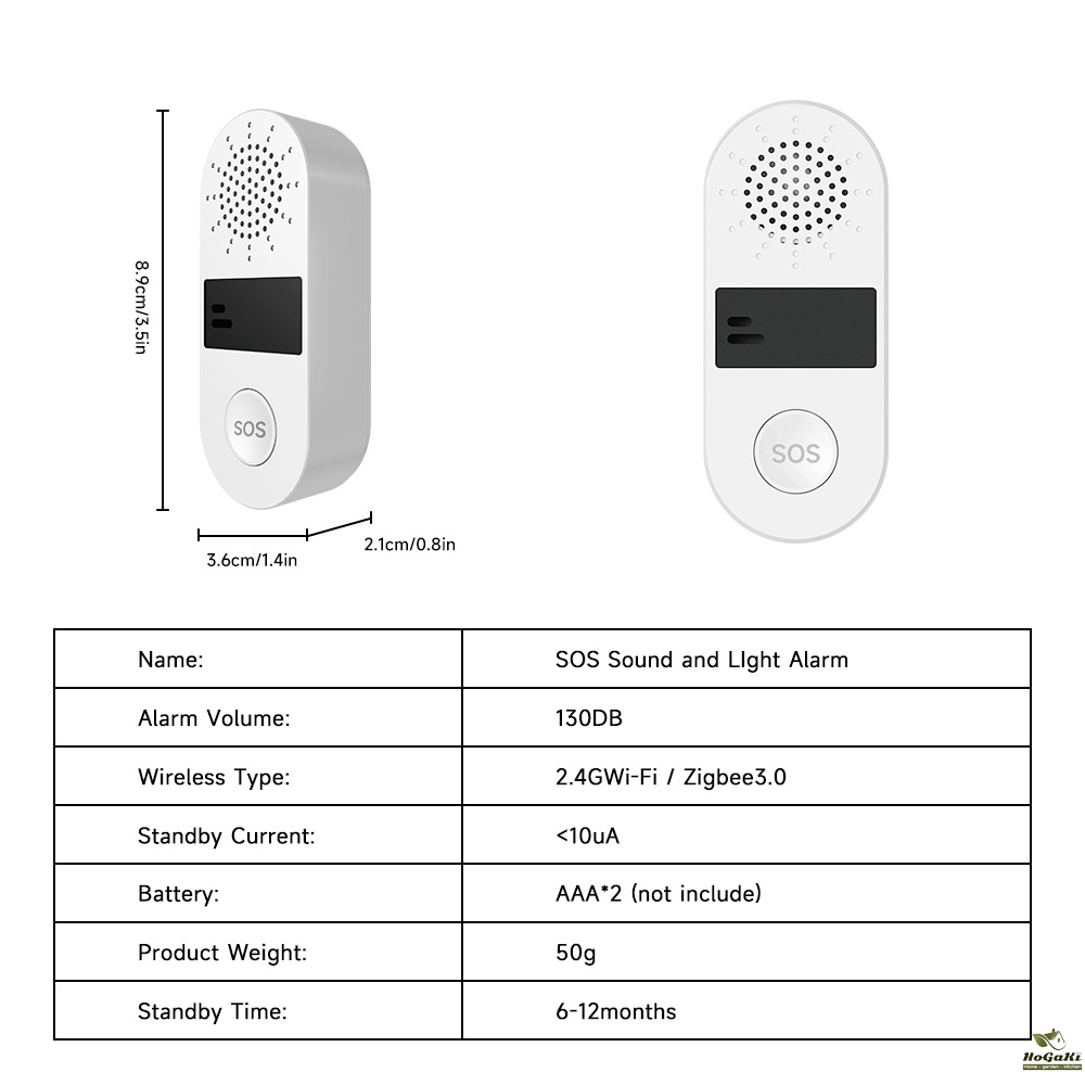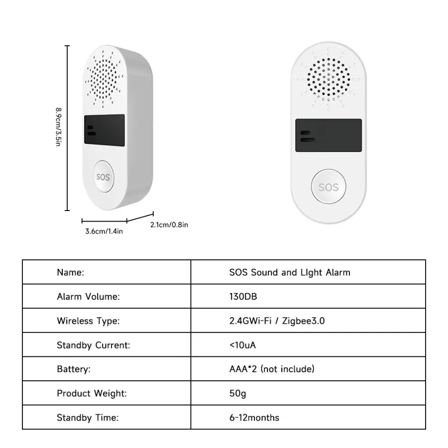 Wifi SOS Sound&Light Alarm , "Tuya Smart"/"Smart Life" APP control, No hub required. When you press the button, the device will activate 130dB sound, and it will send you an alert through App at the same time.