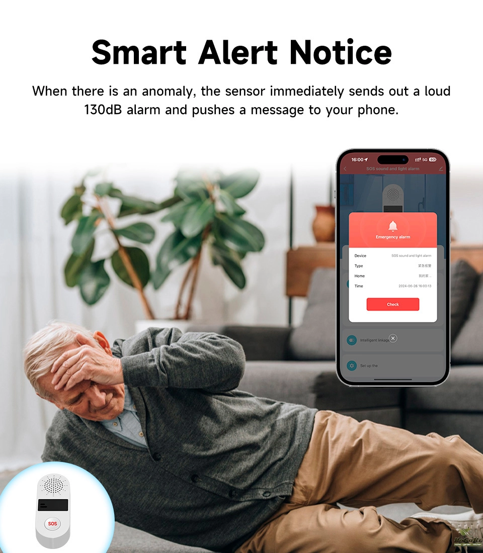 WiFi Panic Button Elderly Pager Smart Call Real-time Monitoring SOS Emergency Alerting Button With 433mhz Home Alarm System