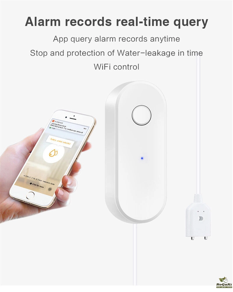 When water touches the sensor, it connects to your Wifi and sends you an alert through the tuya app