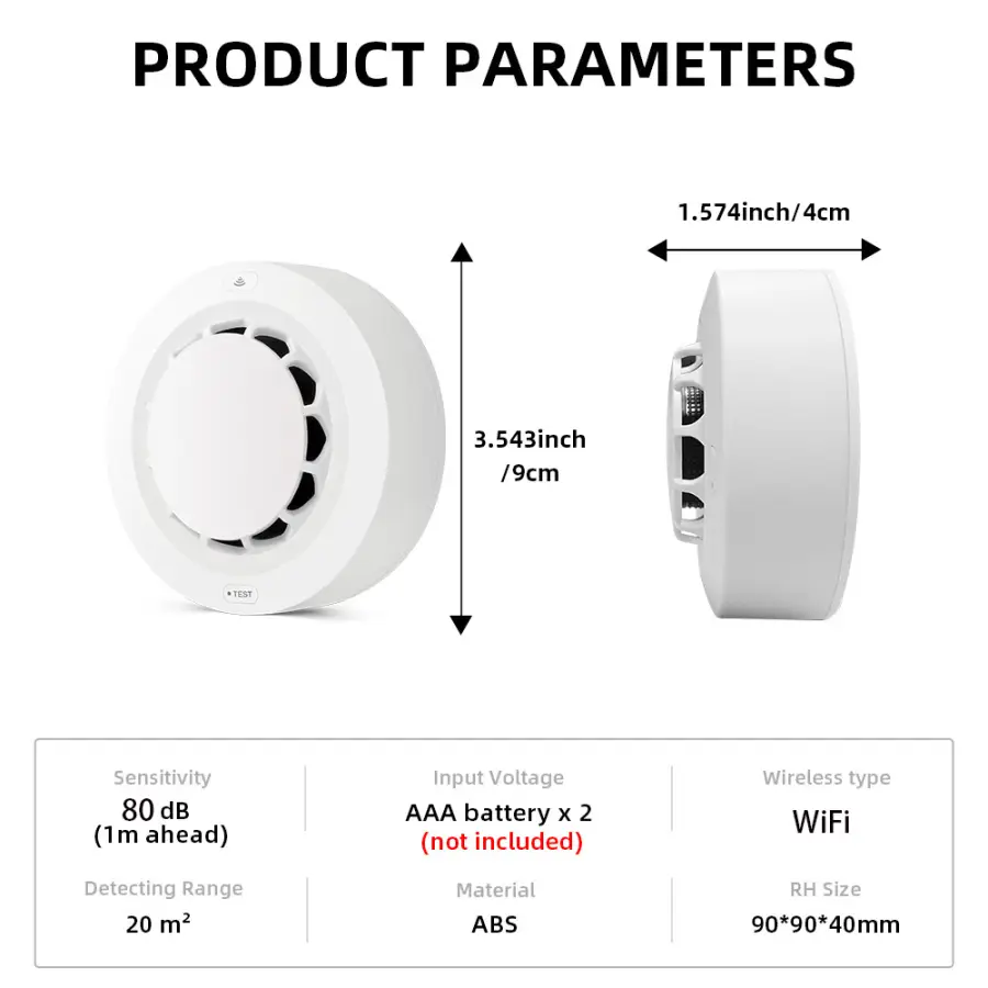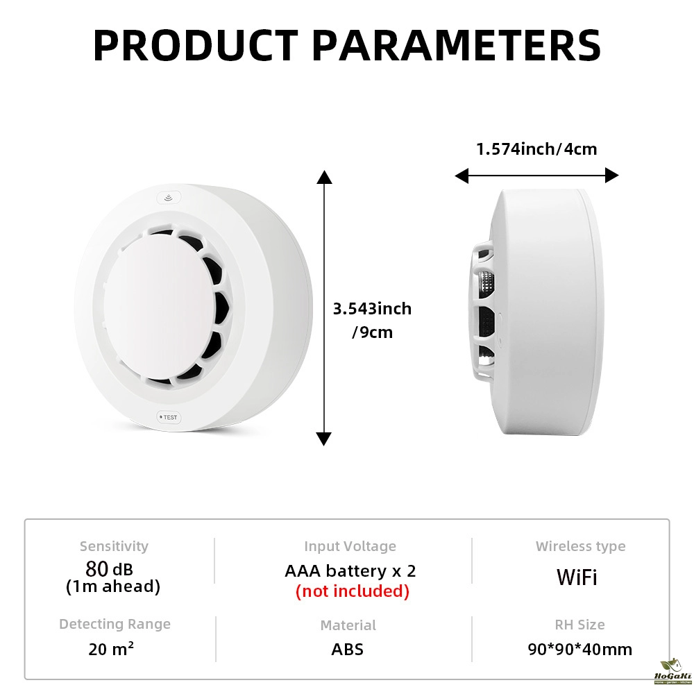 This product is an intelligent WIFI photoelectric smoke sensor. It is able to detect the presence of smoke in real time. Once the danger of fire smoke is detected, the red LED of the sensor will illuminate and alarming to remind you and your family in time. It can be widely used in homes, lounges, coffee shops, dance halls and other places where fire alarm monitoring is required. (This sensor cannot detect gas/heat/fire.)