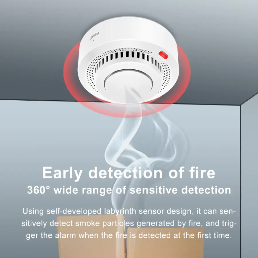 【 High-sensitivity smoke detection] when a fire occurs, the sensor will sensitively detect smoke, send out an alarm bell, and then push the notice to your smart phone to protect people and property. Exclusive smoke intelligent algorithm has high sensitivity, no false alarm and strong anti-interference ability.