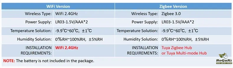 Wireless Type : Wi-Fi 2.4GHz(WiFi Version)/Zigbee 3.0(Zigbee Version)