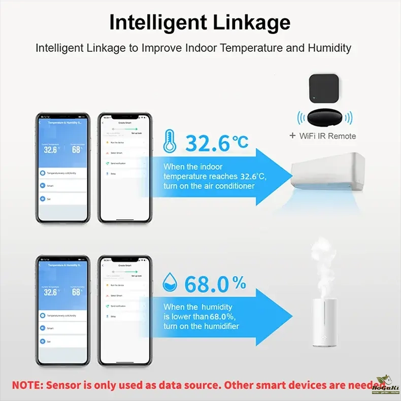 The sensor can be used as the temperature and humidity data source of Tuya Smart, Smart Life, Amazon Alexa, Google Home. You can do many automated processes based on the data source.