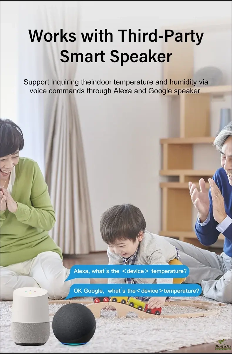 The sensor supports Amazon Alexa, Google Home Assistant. You can check the current temperature and humidity by voice.