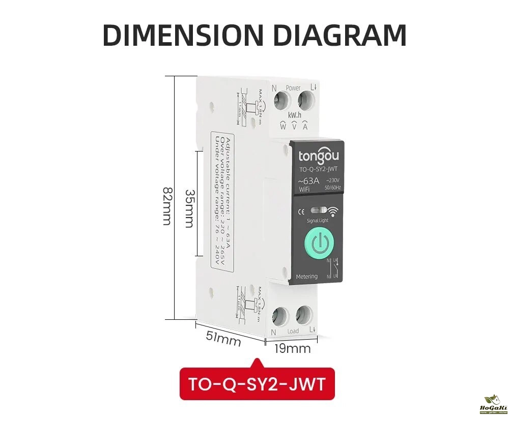 TUYA WIFI Smart Circuit Breaker Power Metering 1P 63A DIN Rail for Smart Home wireless Remote Control Smart Switch by APP TONGOU