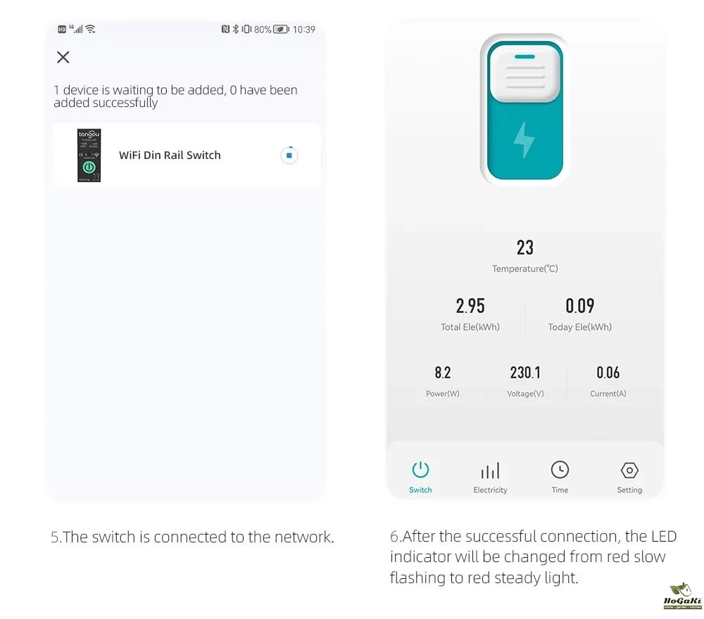 1 . To connect the wire from the uppper of the WiFi DINRail Switch , the live wire connect to the Lpole , and neutral wire connect to the N pole , please make sure that the wiring is correct and strong WiFi signal.