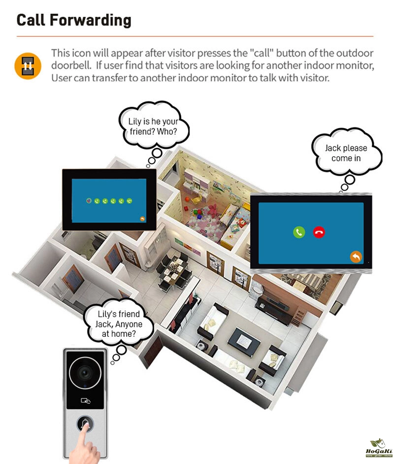 Dual-Way Communication between indoor monitor and outdoor camera; Call Transfer among monitors. You don't always go downstairs open the door after install the multiple intercom.