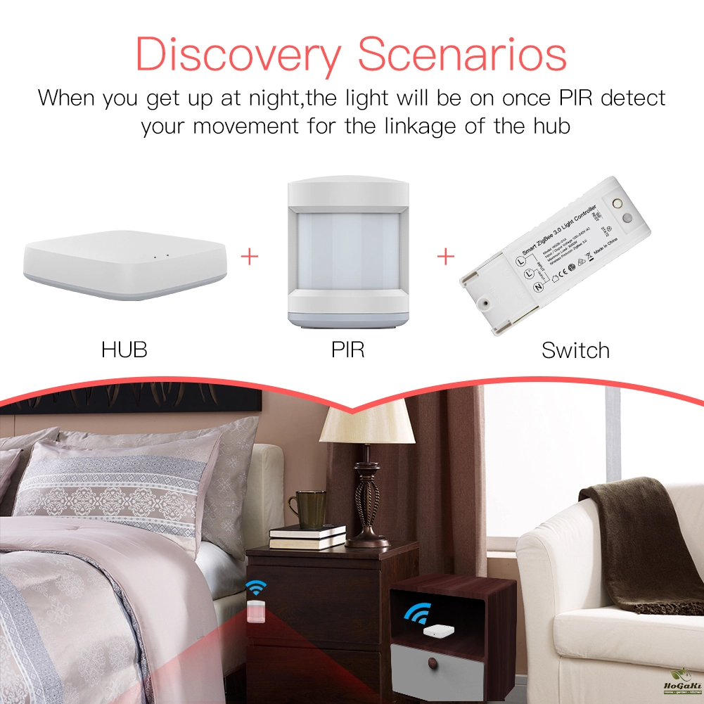 When you get up at night, the light will be on once PIR detect your movement for the linkage of the hub