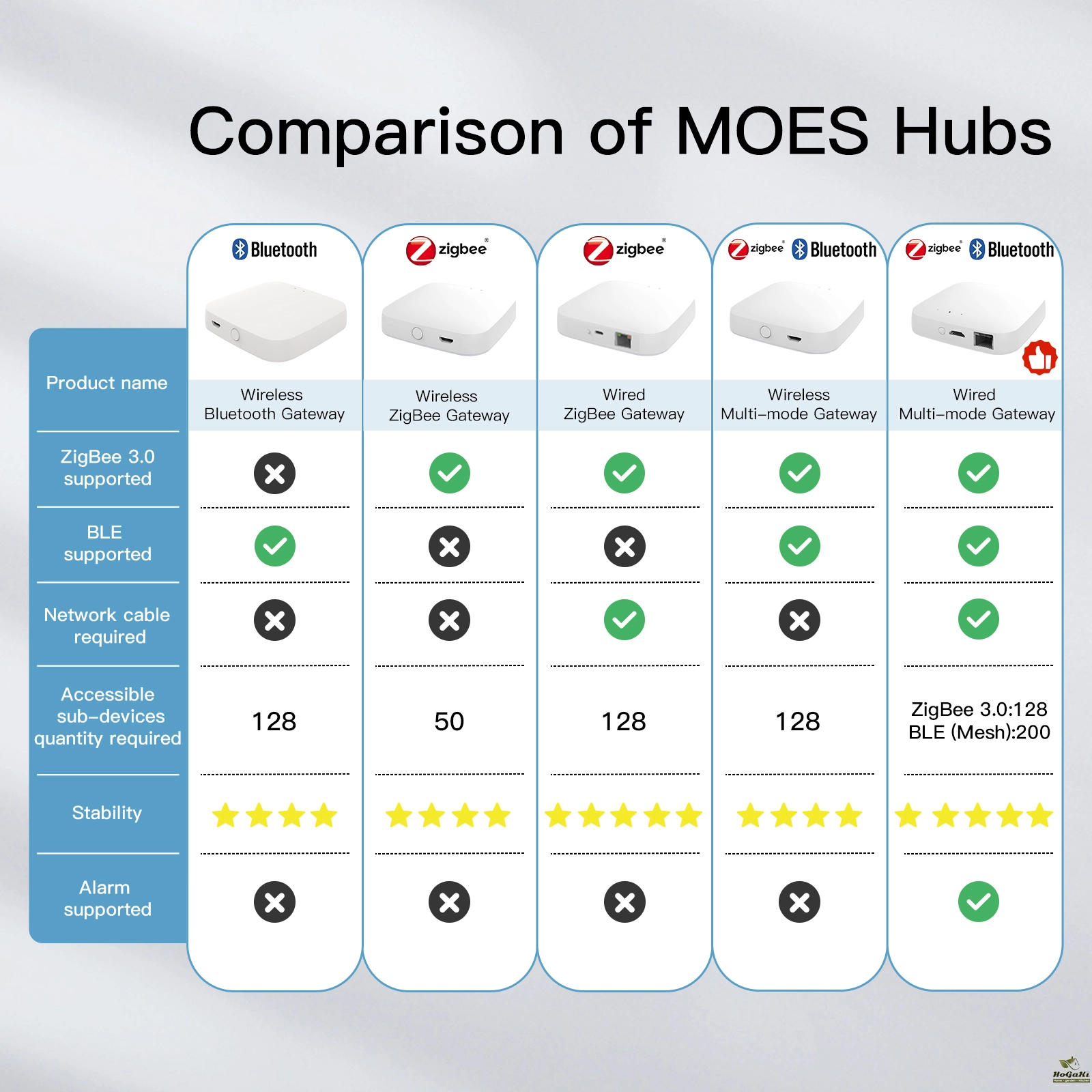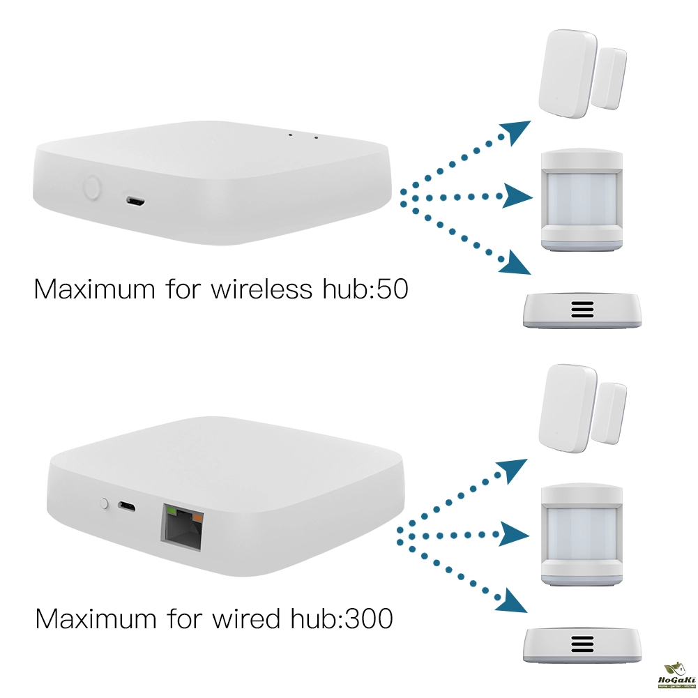 5.Easy to Fit:The smart gateway hub is designed with absolutely no wiring required and an extremely quick simple WiFi setup,no professional technical skills needed.And there is another network cable for the wired version to connect the WiFi router additionally.Note:Two versions optional with wired and wireless connectivity.
