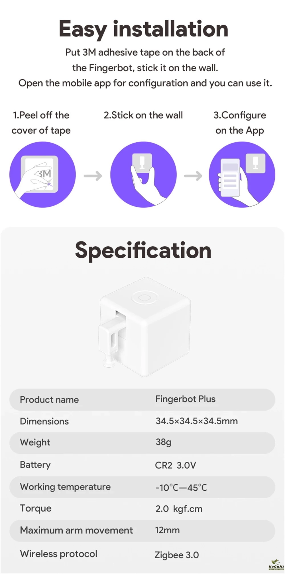 【Ultra-long battery life】:The zigbee fingerbot uses the CR2 battery, which has ultra-long battery life.