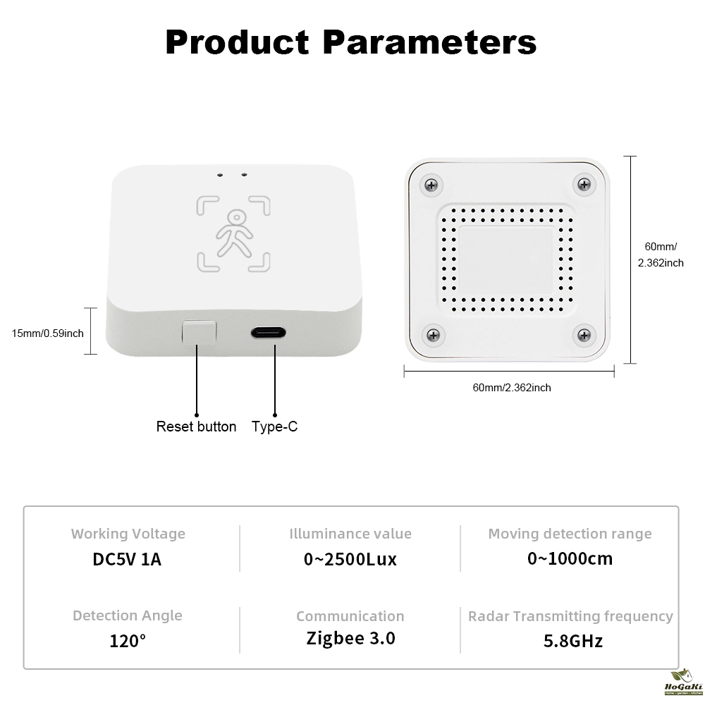 Tuya Zigbee Human Presence Detector Smart Life MmWave Radar Pir Motion Sensor with Luminance Distance Detect Monitor Breathing