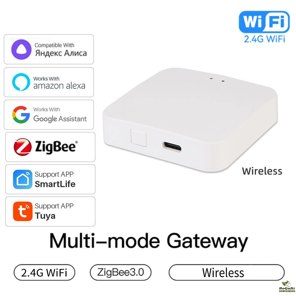 1.Q:Does this hub work with ZigBee 3.0 products? A:Yes,it can not only work with tuya zigbee products,but also zigbee 3.0 ones. 2.Q:Can this hub control WiFi smart products in the same app? A:This hub can form a whole house linkage for all the products in your same one app for the hub?is?connected via the wifi router,but this is the ZigBee version,soit can only be connected with Zigbee devices,no WiFi devices available. 3.Q:Does it work with Alexa echo? A:Yes,it's compatible with Alexa for voice control,as well as Google Home. 4.Q:What is the ZigBee protocol for this hub? A:ZigBee and ZigBee 3.0 protocol are both fine.