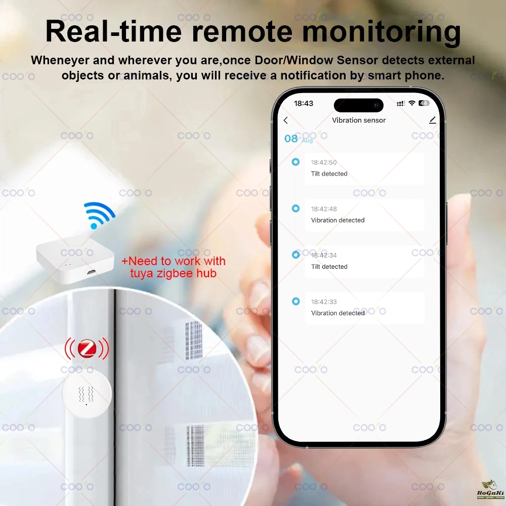 【Real-time Remote Monitoring】No matter when and where, once the vibration sensor detects vibration or movement, you will receive a push notification from your smartphone in the Tuya Smart Life App as real-time monitoring.
