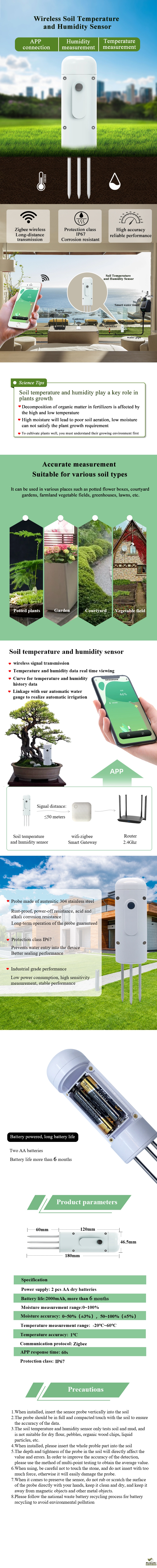 Tuya zigbee Soil Moisture and Temperature Sensor (The connected protocol of soil sensor is Zigbee, and requires Tuya zigbee gateway to connect the mobile phone APP)
