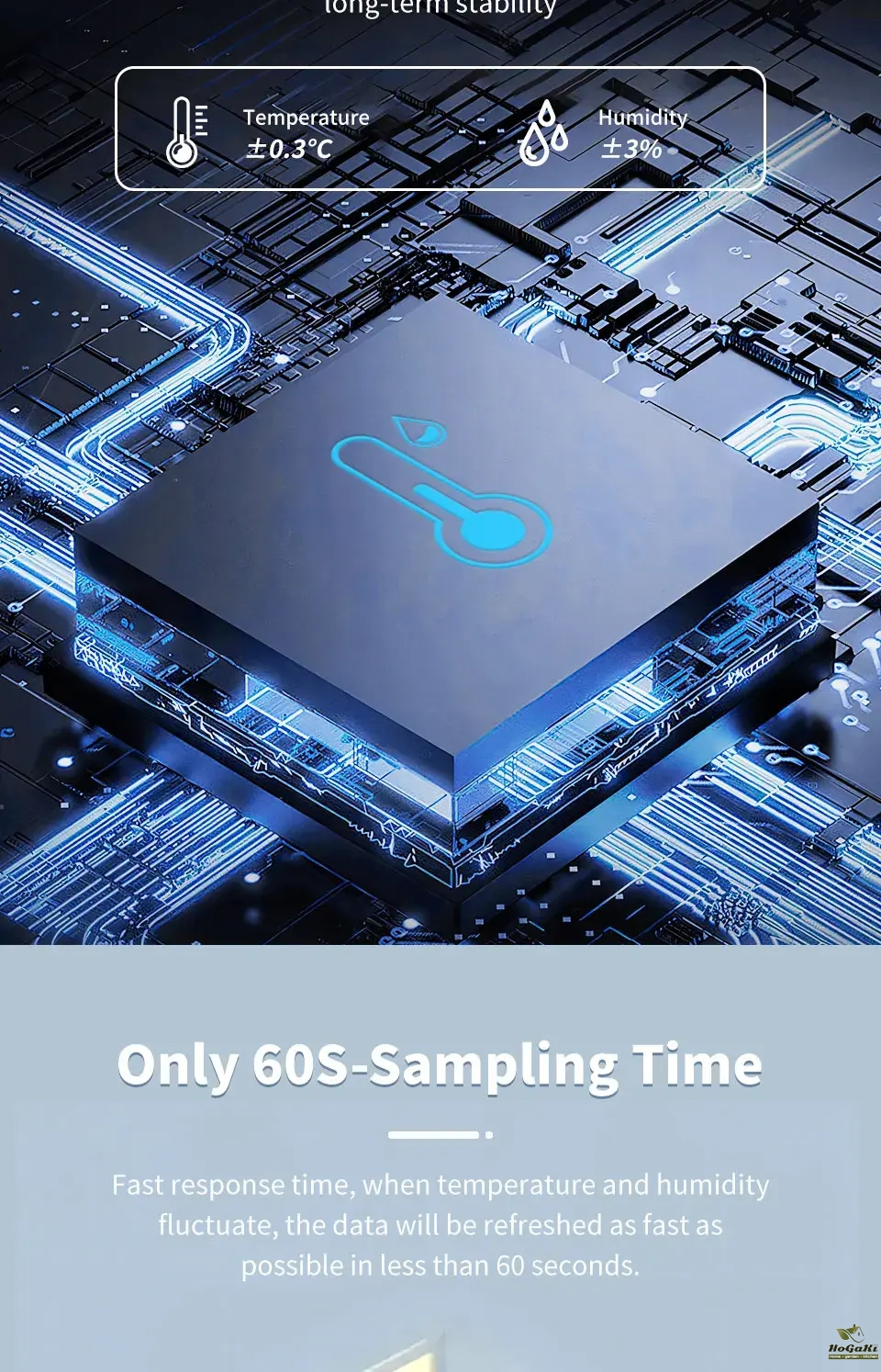 Temperature is accurate to ±0.3℃, and humidity is ±3%RH
