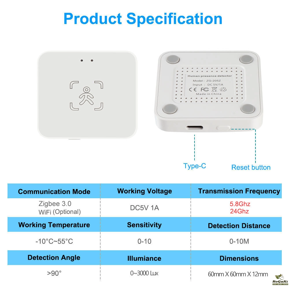 Tuya Zigbee/WiFi Smart Human Presence Sensor MmWave Radar Detection Luminance/Distance Detection For Z2M Support Home Assistant