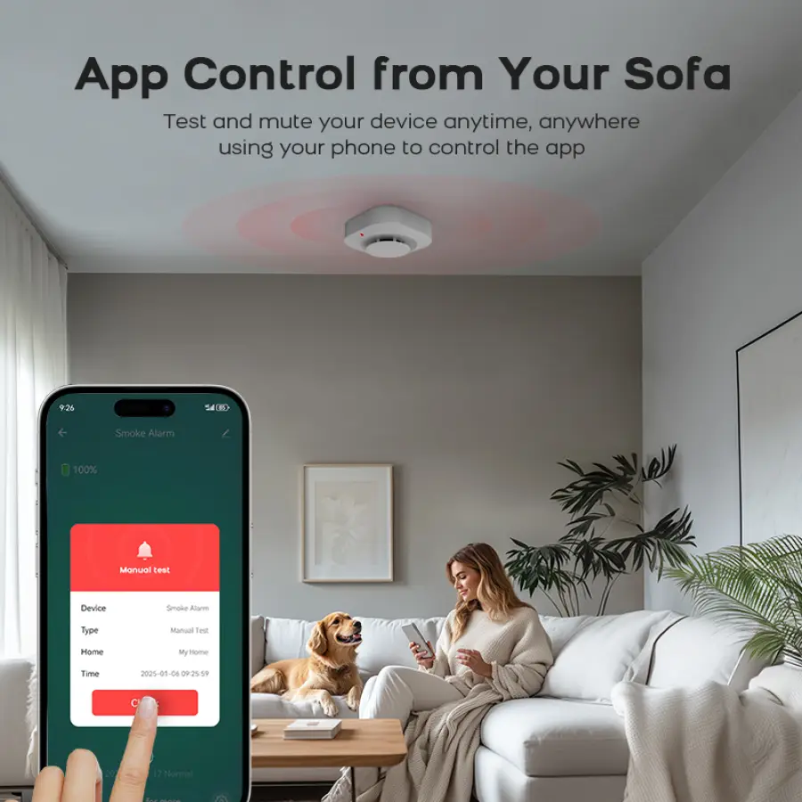 3.App Push Notifications and Control:Compatible with Smart Life and Tuya App enables the timely discovery of danger of fire or smoke and real- time notifications to your smart phone.