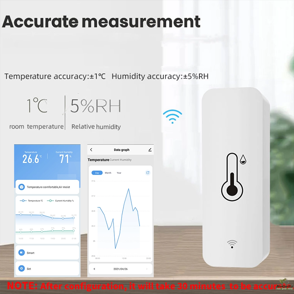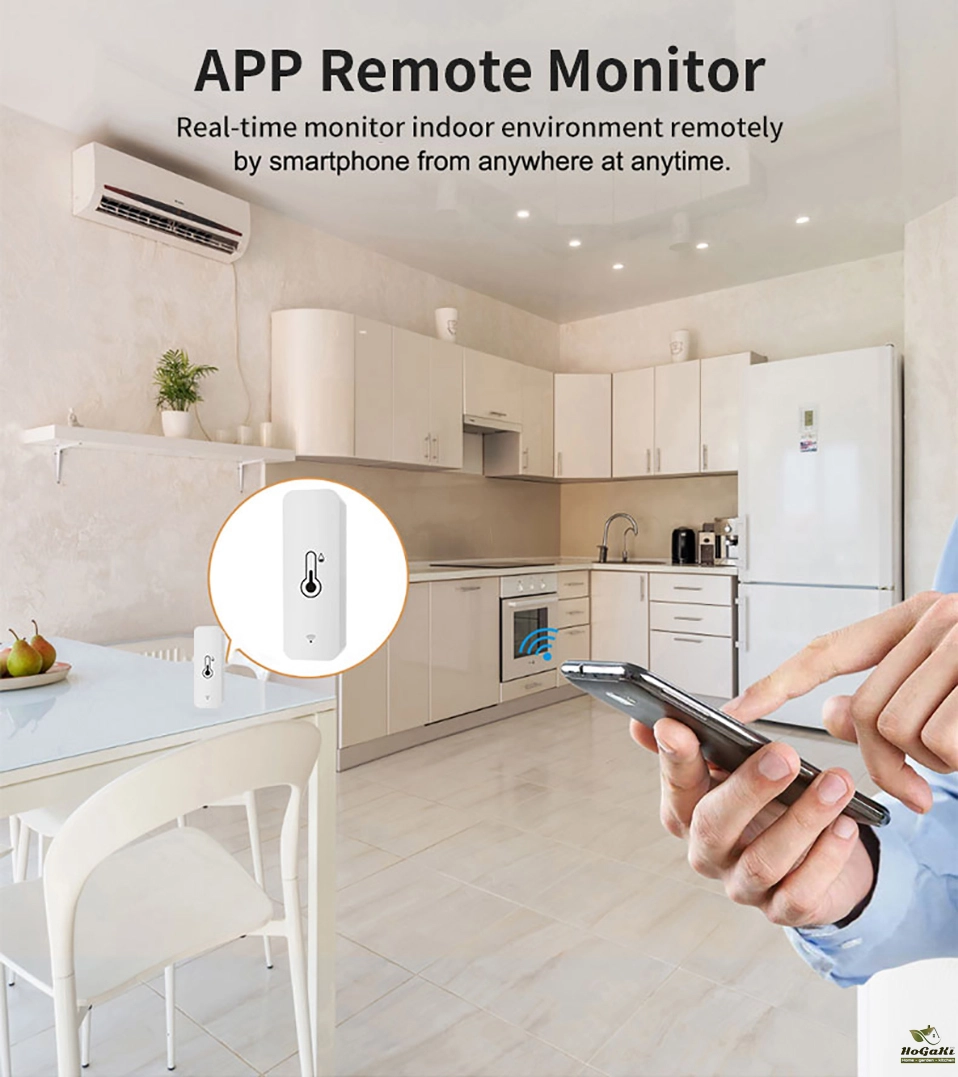 When the sensor is registered to the APP and connected to the Internet, you can monitor the temperature and humidity of the room in real time anywhere in the world.